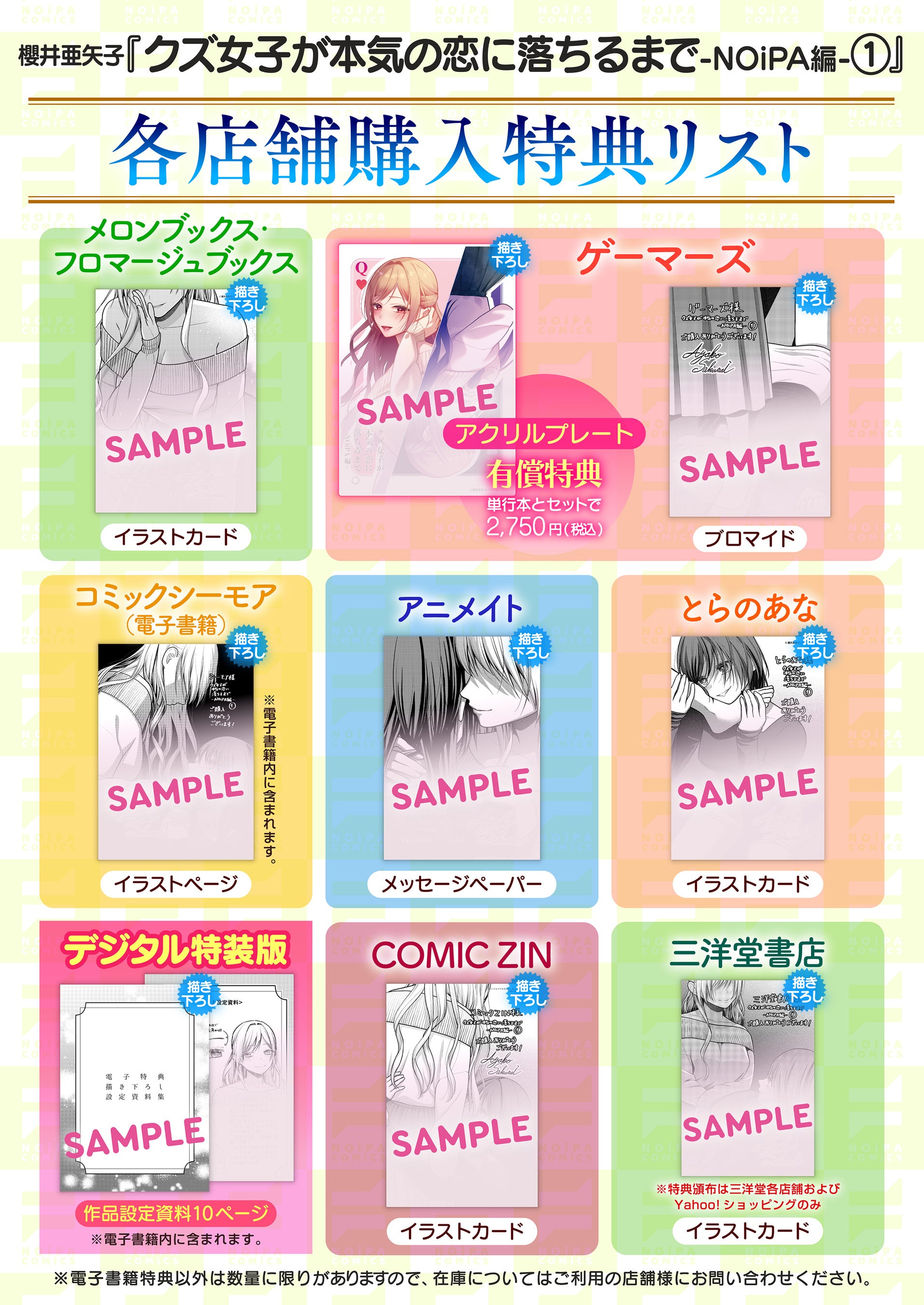 株式会社ジーオーティー(本社:東京都港区、代表取締役:吉永敦仁)はNOiPA COMiCS レーベルより2025年12月25日にコミックス『クズ女子が本気の恋に落ちるまで-NOiPA編-(1)』(著:櫻井亜矢子)を発売いたします。