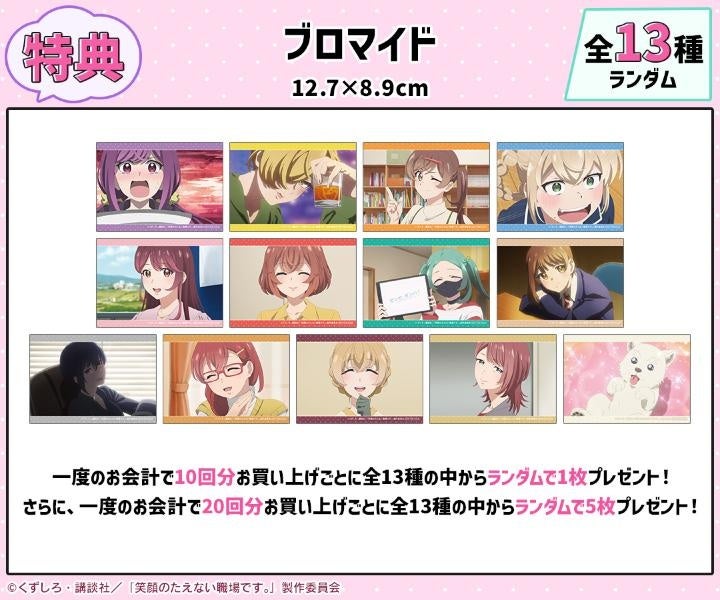 漫画・アニメのオリジナルグッズを販売する株式会社アルマビアンカは、12月19日(金)よりTVアニメ「笑顔のたえない職場です。」オンラインくじを販売いたします!