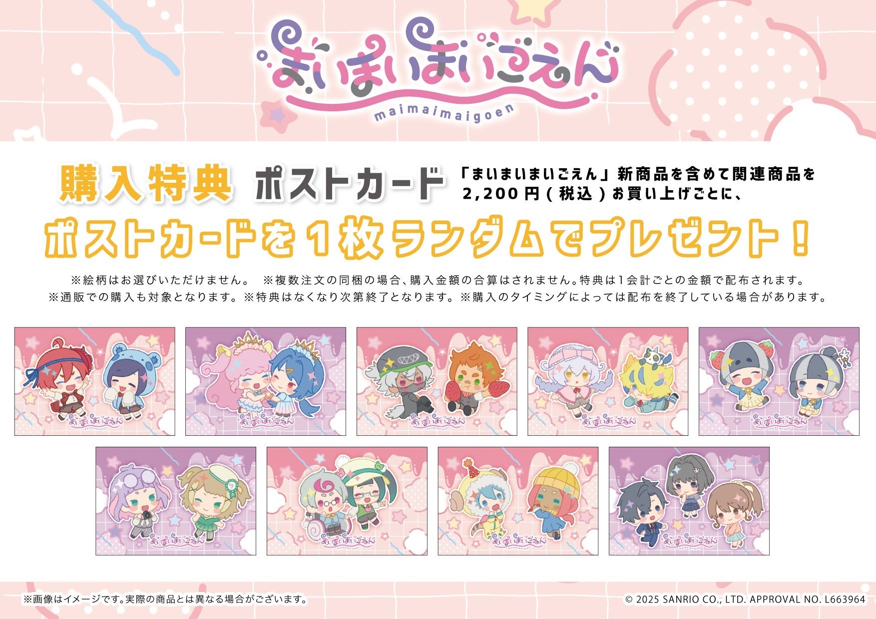 『まいまいまいごえん』の商品を1会計2,200円(税込)お買い上げごとに、購入特典としてポストカード(全9種)をランダムで1枚プレゼント!