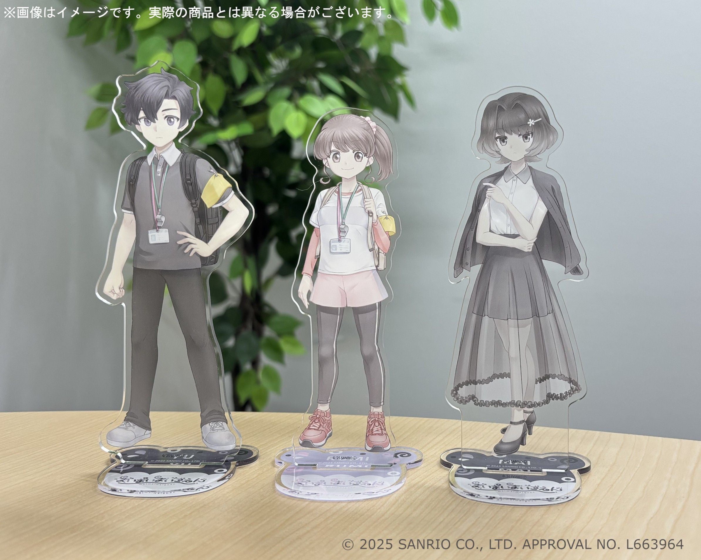 大きさはどこにでも飾りやすい縦横最大15cm。岡田、ルミ先生、マイの公式イラストをじっくりと鑑賞してみてください!