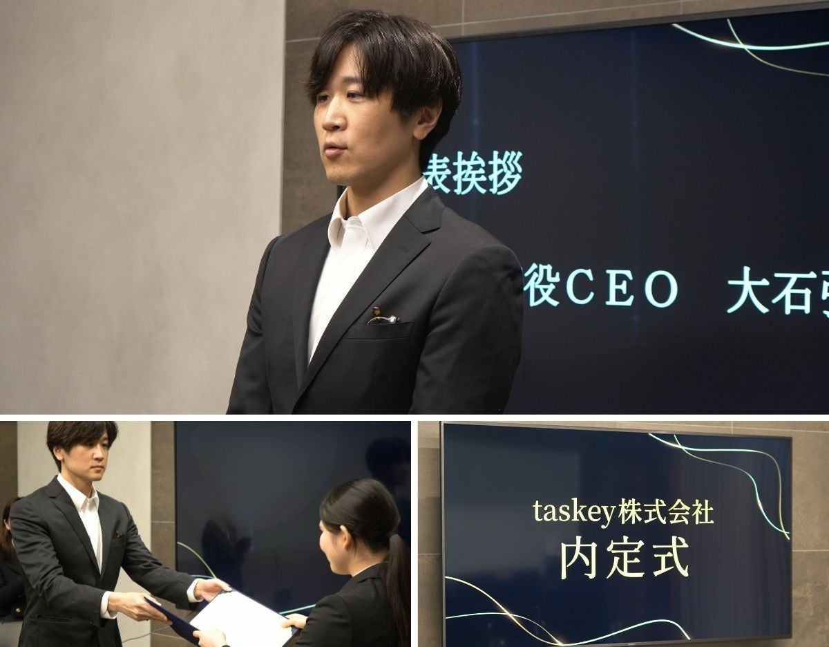 taskey初となる新卒採用を開始しました。 3名の内定者を迎え、10月には熱気あふれる内定式を実施! 次世代を担うフレッシュな力が加わり、組織としての熱量はさらに高まっています!