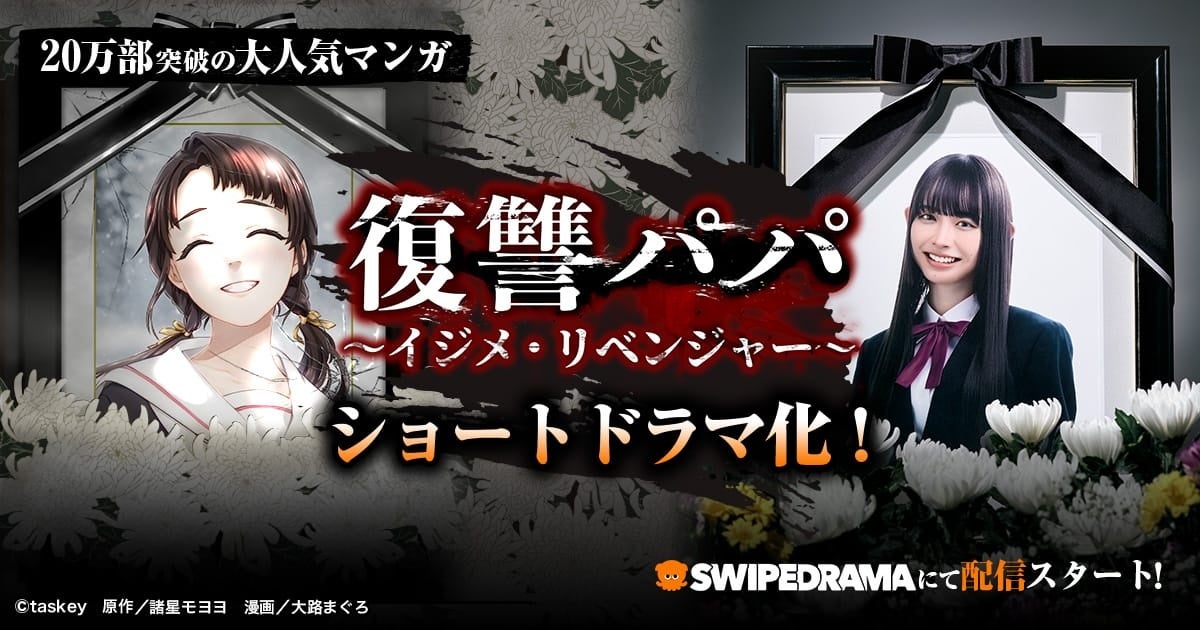 ショートドラマアプリ「BUMP」では『復讐同盟 —サレ妻と愛人はクズ旦那を制裁する—』が、縦型ショートドラマアプリ「SWIPEDRAMA」では『復讐パパ 〜イジメ・リベンジャー〜』『狂育ママ・サエコ─この子のためなら─』がそれぞれショートドラマ化!