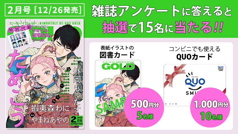 株式会社リブレ(本社:東京都新宿区、代表取締役社長:是枝由美子)は、ためこう先生が表紙の雑誌「ビーボーイゴールド2026年2月号」を12月26日に発売いたします。https://www.b-boy.jp/magazine/230417