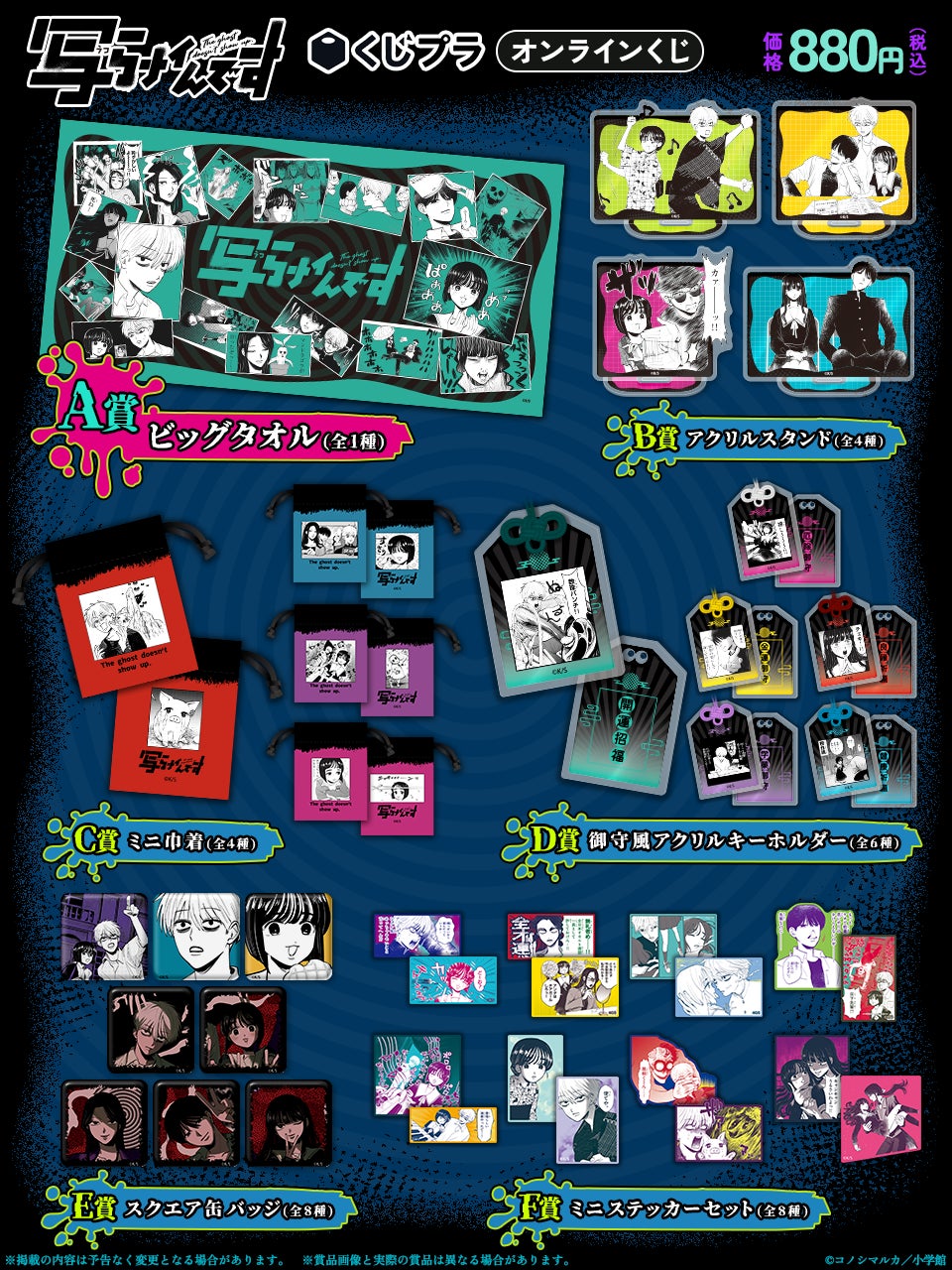 今話題のオカルト×ボーイ・ミーツ・ガール!漫画『写らナイんです』が、大好評につきオンラインくじ「くじプラ」に第2弾として登場!! キャラクターたちの日常を彩った新規賞品を多数ラインナップしました!