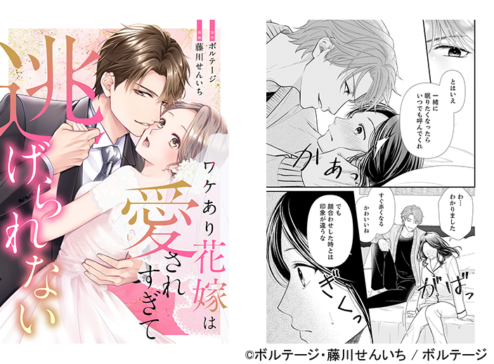 株式会社ボルテージ(本社:東京都渋谷区 代表取締役:津谷 祐司)は、オトナ女子向けオリジナルコミックレーベル「ボル恋comic」にてボル恋タイトル「100シーンの恋+」内で配信中の「溺愛ウェディング~ワケあり妻は愛されすぎて逃げられない~」を原作としたコミカライズ作品「ワケあり花嫁は愛されすぎて逃げられない」を12月20日(土)よりエヌ・ティ・ティ・ソルマーレ株式会社(本社:大阪市中央区 代表取締役社長:朝日利彰)が運営する、国内最大級の総合電子書籍ストア「コミックシーモア」にて先行配信していることをお知らせいたします。