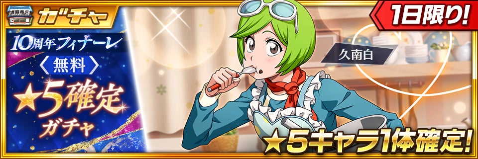 各ガチャは1日限定・全4回のみ実施され、さらにガチャ1回で★5キャラクターが必ず1体確定となる期間限定キャンペーンです。