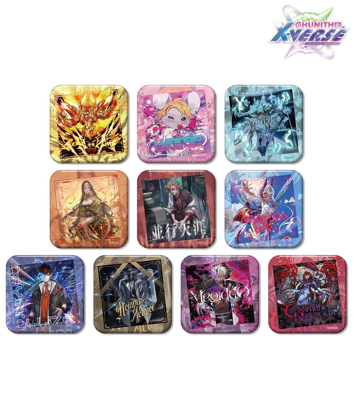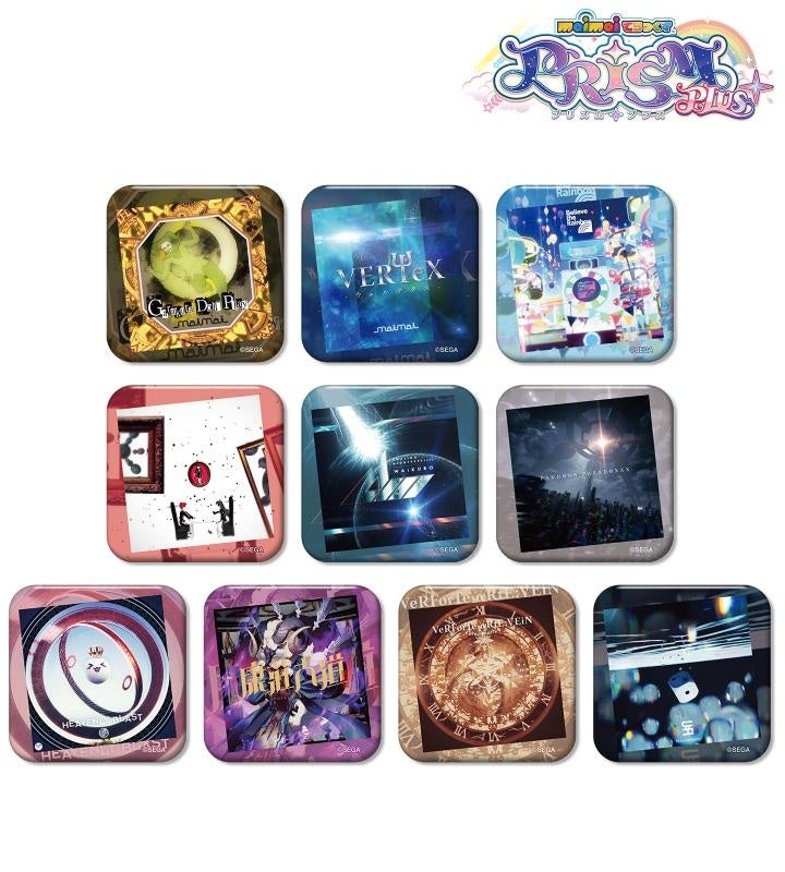 Garakuta Doll Play、VERTeX、Believe the Rainbow、ガラテアの螺旋、AMAZING MIGHTYYYY!!!!、PANDORA PARADOXXX、Heavenly Blast、康莊大道、VeRForTe αRtE:VEiN、IF:Uの楽曲ジャケットイラストをスクエア缶バッジに仕上げました。