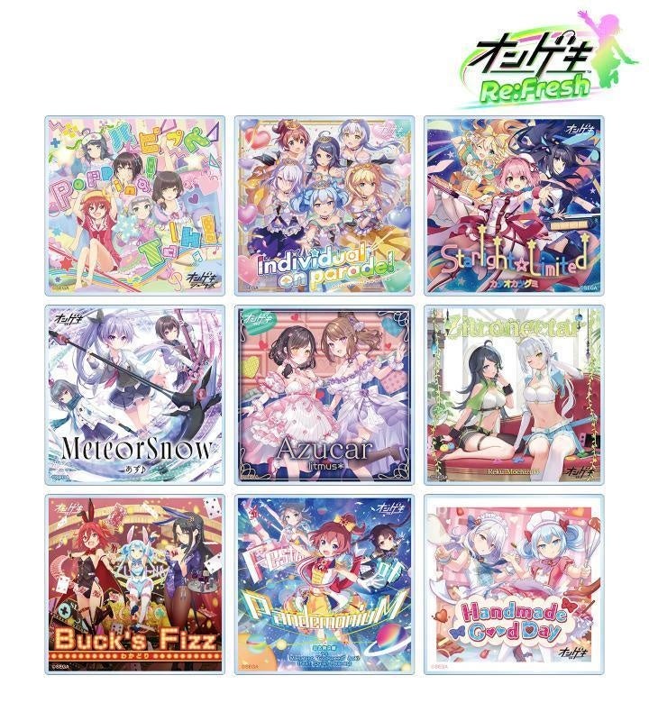 パピプペ Popping!Talk!、Individual on parade!、Starlight★Limited、MeteorSnow、Azucar、Zitronectar、Buck’s Fizz、FestA of PandemoniuM、Handmade Good Dayの楽曲ジャケットイラストをアクリルコースターに仕上げました。