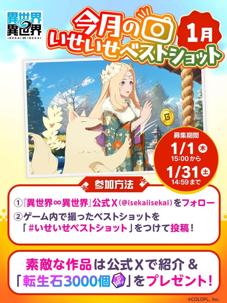 さらに、元日にログインするだけで合計3,000個以上の転生石をプレゼント!今年も『異世界∞異世界』をお楽しみください。