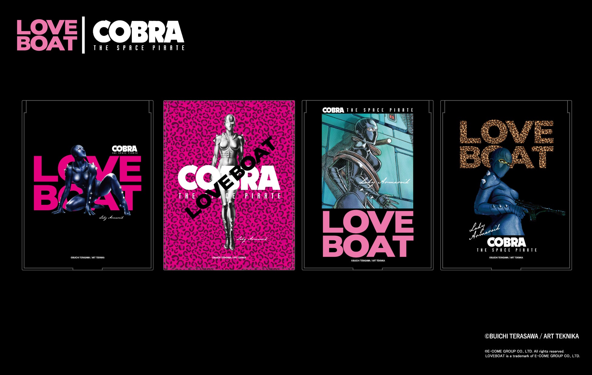 ストリートとポップカルチャーを横断し、独自の世界観を発信し続けるファッションブランド LOVEBOAT(ラブボート) は、漫画家・寺沢武一氏による伝説的SF作品 『COBRA(コブラ)』 とのコラボレーションを、2026年1月1日(木) に正式発表いたします。本コラボレーションでは、『COBRA』の象徴的キャラクター レディ・アーマロイド を中心に、LOVEBOATのアイコンである大胆なロゴデザイン、レオパードモチーフ、ビビッドなピンクカラーを融合。原作の持つセクシーさ、強さ、未来感を、現代のストリートファッションとして再構築しました。