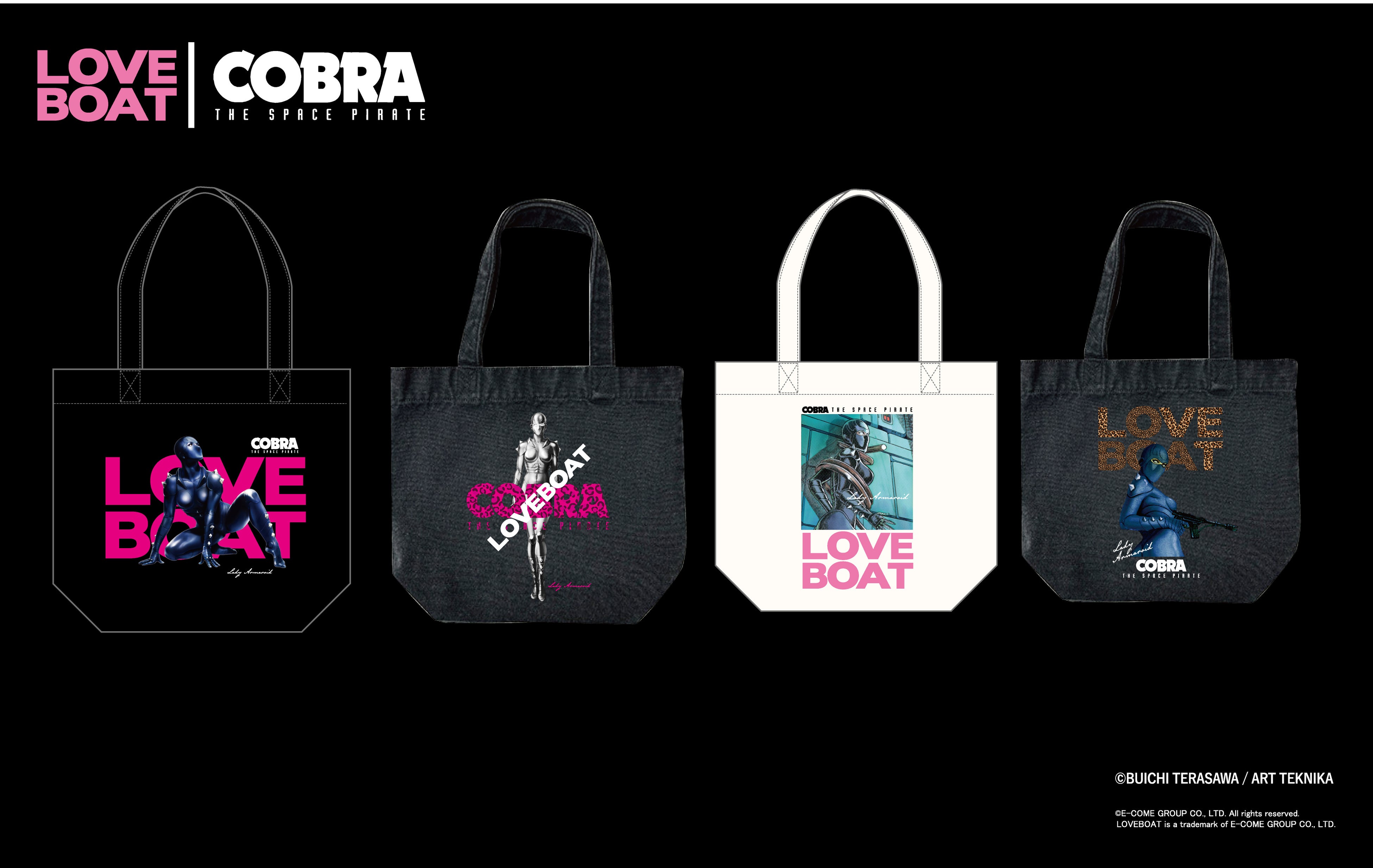 ストリートとポップカルチャーを横断し、独自の世界観を発信し続けるファッションブランド LOVEBOAT(ラブボート) は、漫画家・寺沢武一氏による伝説的SF作品 『COBRA(コブラ)』 とのコラボレーションを、2026年1月1日(木) に正式発表いたします。本コラボレーションでは、『COBRA』の象徴的キャラクター レディ・アーマロイド を中心に、LOVEBOATのアイコンである大胆なロゴデザイン、レオパードモチーフ、ビビッドなピンクカラーを融合。原作の持つセクシーさ、強さ、未来感を、現代のストリートファッションとして再構築しました。