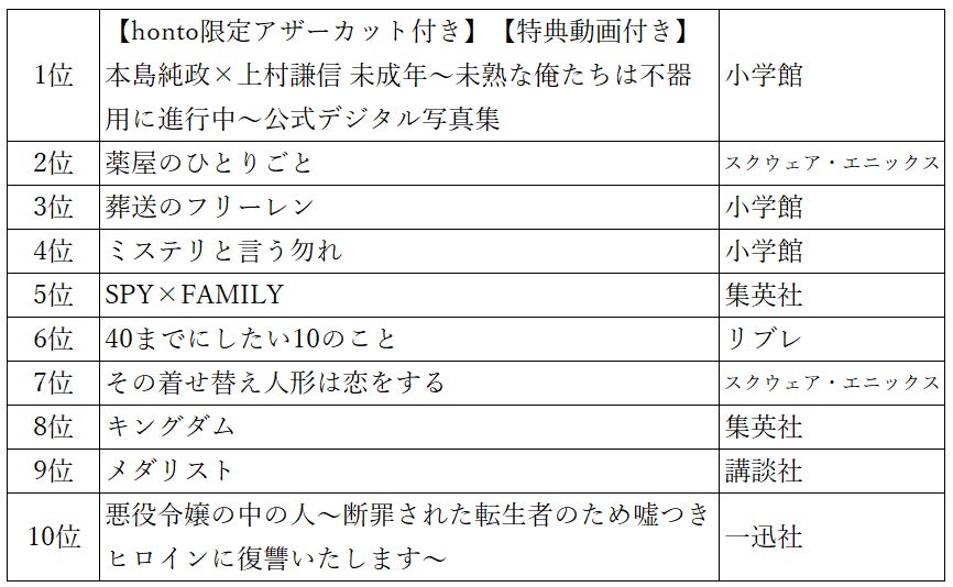 特集ページURL:https://honto.jp/cp/hybrid/recent/ranking.html