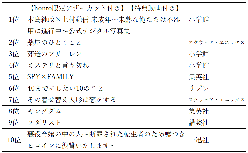 特集ページURL:https://honto.jp/cp/hybrid/recent/ranking.html