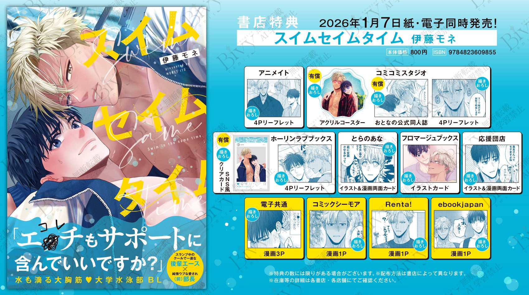 株式会社ジーオーティー(本社:東京都港区、代表取締役:吉永敦仁)はBivy comic レーベルより2026年1月7日にコミックス『スイムセイムタイム』(著:伊藤モネ)を発売いたします。