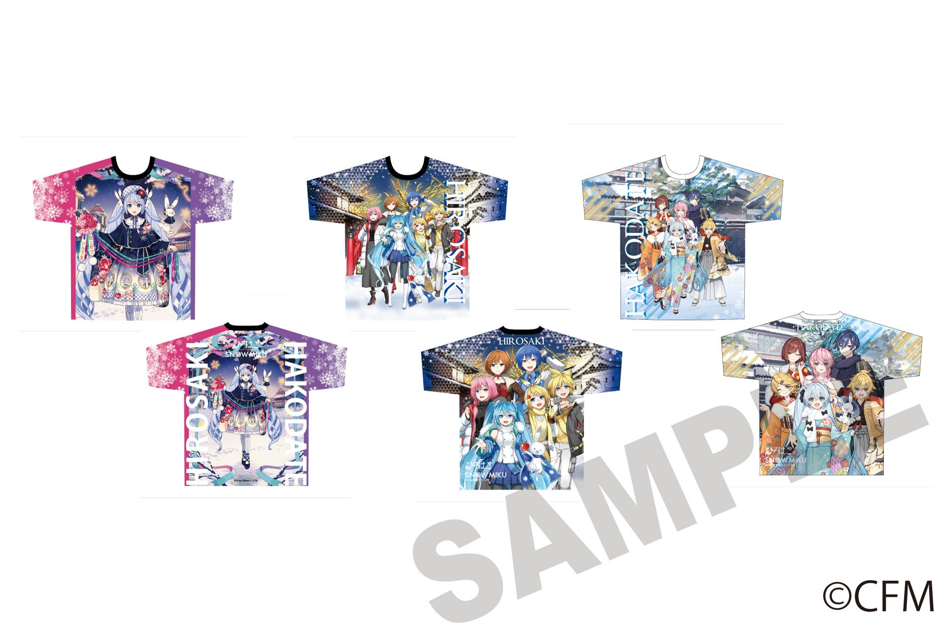 「雪ミク×ひろはこ」フルグラフィックTシャツ 3種 各5,500円(税込)
