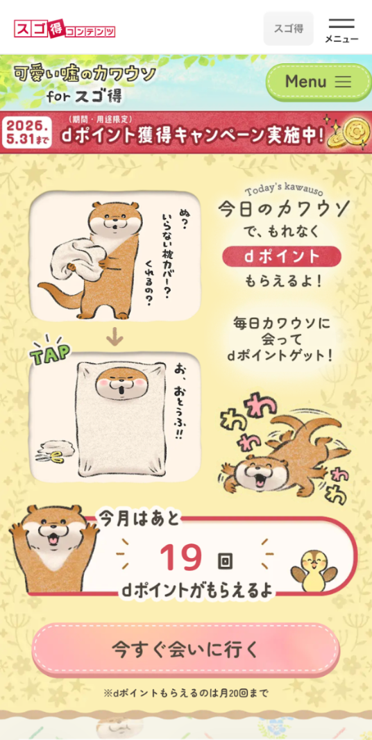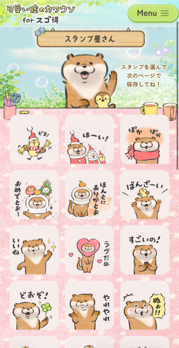 株式会社Minto(本社:東京都港区、代表取締役:水野和寛、以下当社)は、株式会社NTTドコモが提供するスマートフォン向けサービス「スゴ得コンテンツ®」にて、Xや4コマ漫画が話題の人気キャラクター「可愛い嘘のカワウソ」のオリジナルスタンプや壁紙などがダウンロード可能なサービス『可愛い嘘のカワウソ forスゴ得』を2025年12月16日より提供開始いたしました。