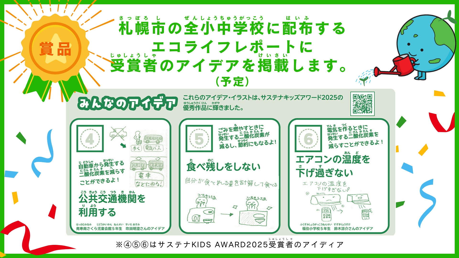 「サステナKIDS AWARD 札幌2026」応募締切り:2026年2月8日(日)/結果発表:2月25日(水)/表彰式:3月14日(土)14:00〜17:00(会場:札幌エルプラザ公共4施設 )