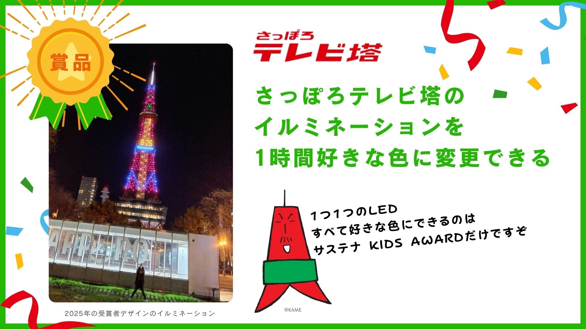 「サステナKIDS AWARD 札幌2026」は、2023年に札幌市で開催されたG7札幌 気候・エネルギー・環境大臣会合のソフトレガシーとして生まれた、さっぽろ連携中枢都市圏の小学校に通う子どもたちを対象としたアワード形式の次世代グリーン人材育成プロジェクトです。子どもたちの創造力や発信力を社会につなげることを目的とし、優れた作品や挑戦を称えるための豪華な賞品も用意しています。