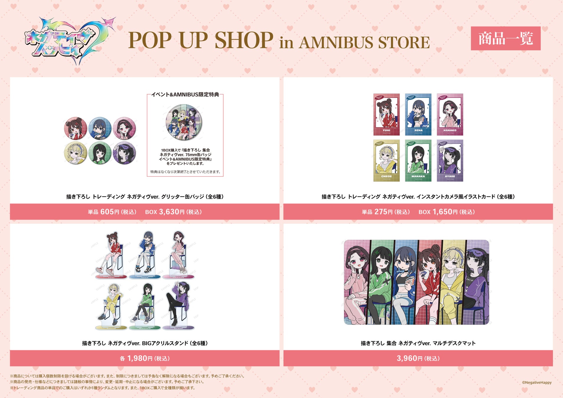 2026年1月30日(金)より「AMNIBUS STORE」にて「『ネガティヴハッピィ』 POP UP SHOP in AMNIBUS STORE」の開催が決定いたしました。