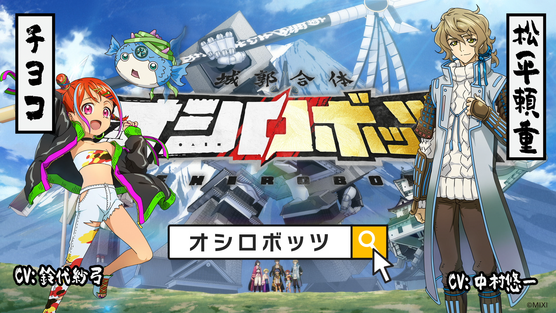 株式会社MIXI(東京都渋谷区、代表取締役社長 上級執行役員 CEO:木村 弘毅)は、MIXI_ANIMEオリジナルコンテンツ『城郭合体オシロボッツ』において、オシロボット高松城パイロット「チヨコ」役を鈴代紗弓さん、シロダマ(武将)「松平頼重」役を中村悠一さんが担当することをお知らせします。また、新たにセリフを加え、一部カットを再撮影した準新作映像も同時公開しました。キャスト発表を記念して、サイン入り解説書(チラシ)が抽選で当たるキャンペーンも実施します。今後も各オシロボットのパイロットおよびシロダマ(武将)のキャラクターボイス(CV) を順次追加していく予定です。