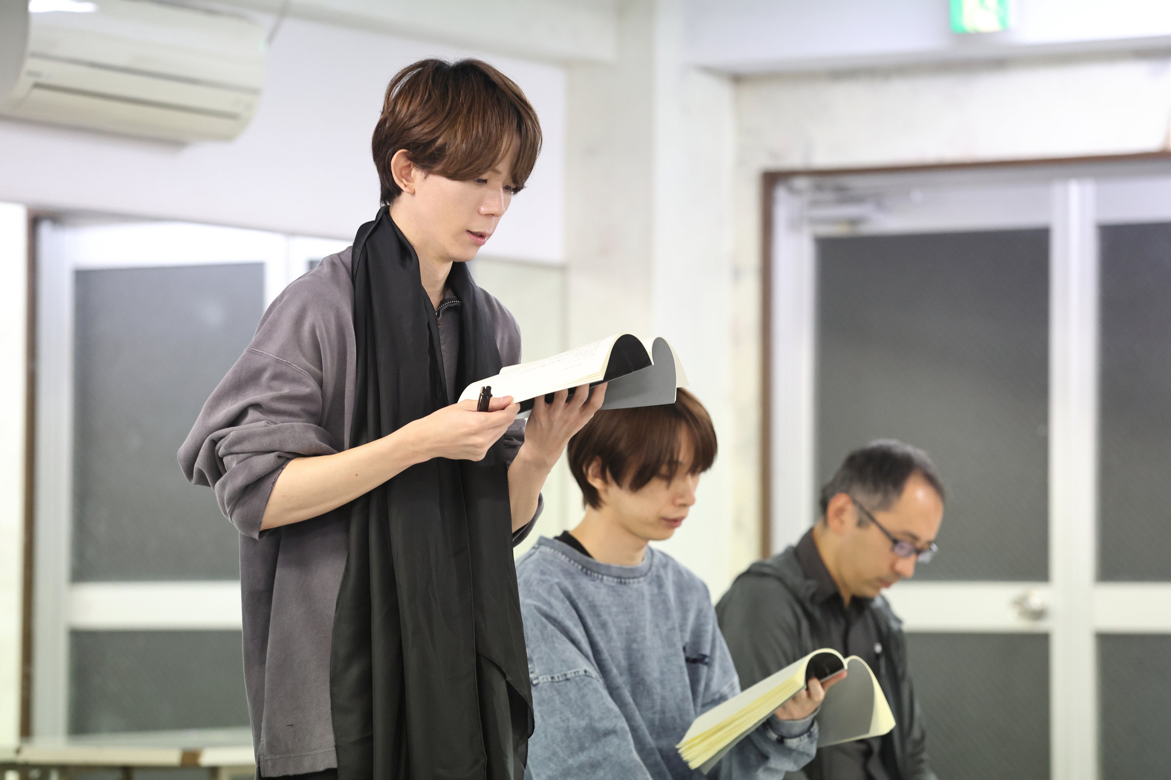 野津山「さっき僕が言った『音だけで』というのは朗読劇ならではだと思うので、観る方は楽しみにしていてほしいです。何か具体的な姿形で伝えるのではなくて、音だけで観る人に想像させるというのは朗読劇の面白さかなって。最初に台本を読んだ時は、これってどうなるんだろう?と思っていたのですが、さっき稽古場で組み込まれている音やリアルなSEを聞いて、なるほど!と思いました」