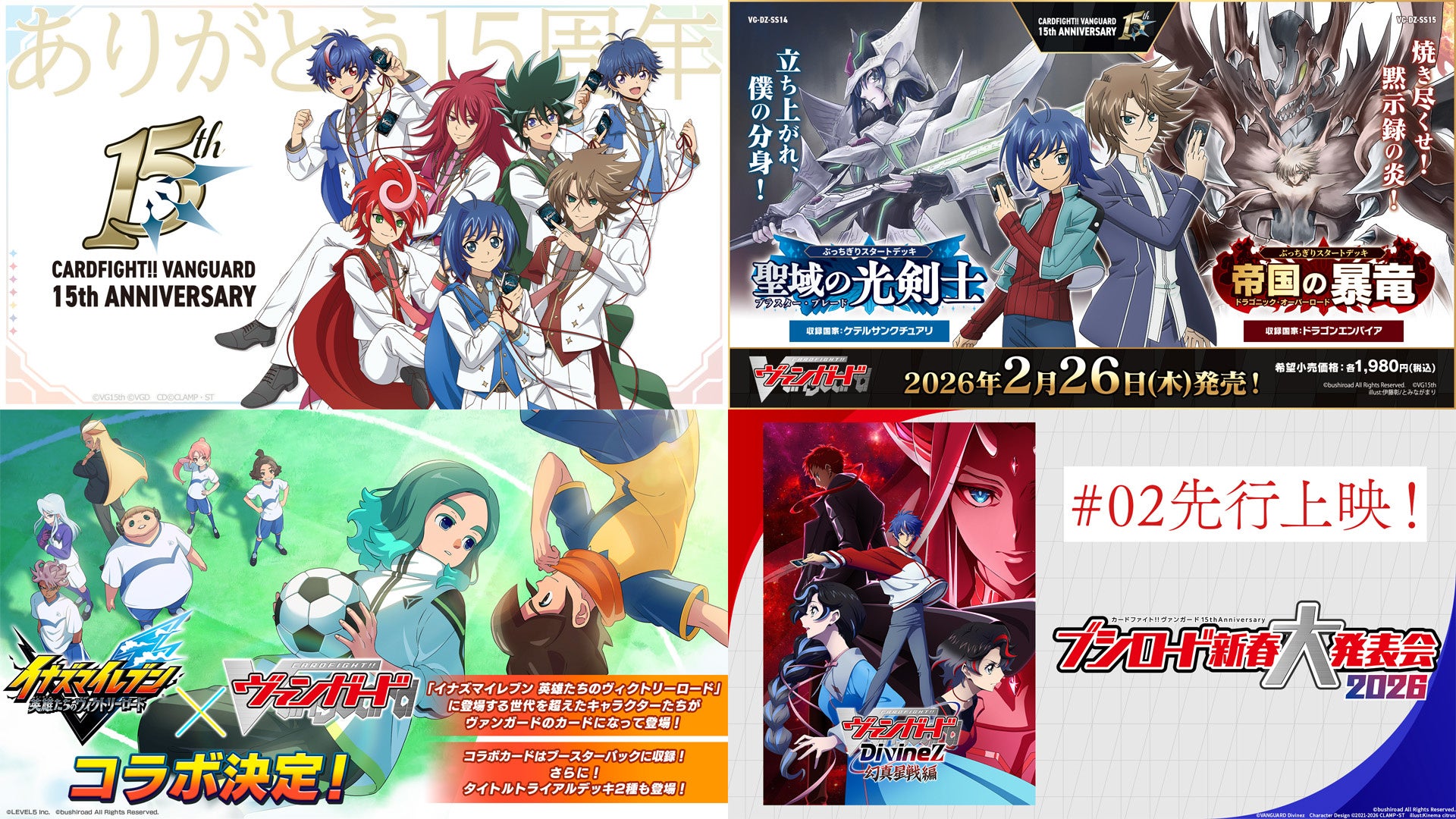 株式会社ブシロード(本社:東京都中野区 代表取締役社長:木谷高明)は、1月12日(月・祝)に『カードファイト!! ヴァンガード 15th Anniversary ブシロード新春大発表会2026』を開催し、今後の展開を発表しましたことをご報告いたします。