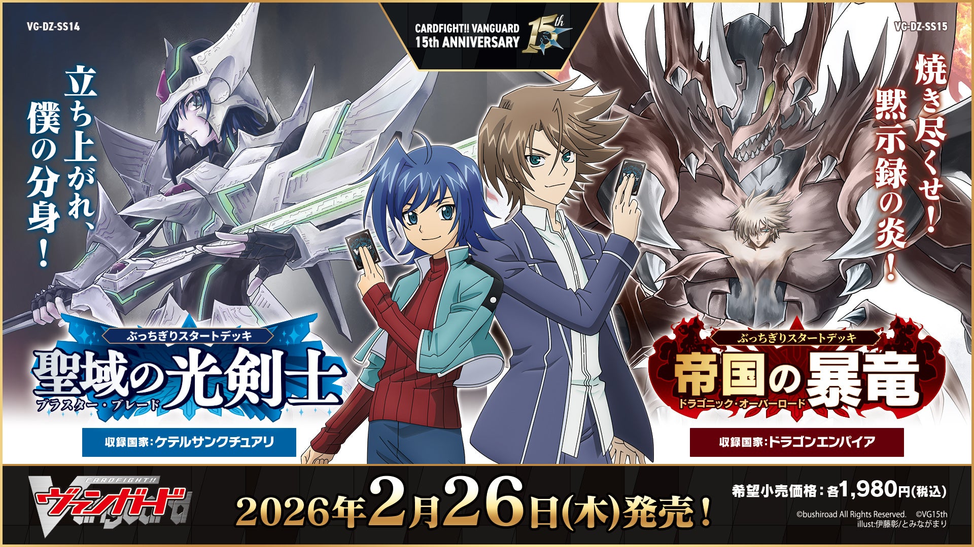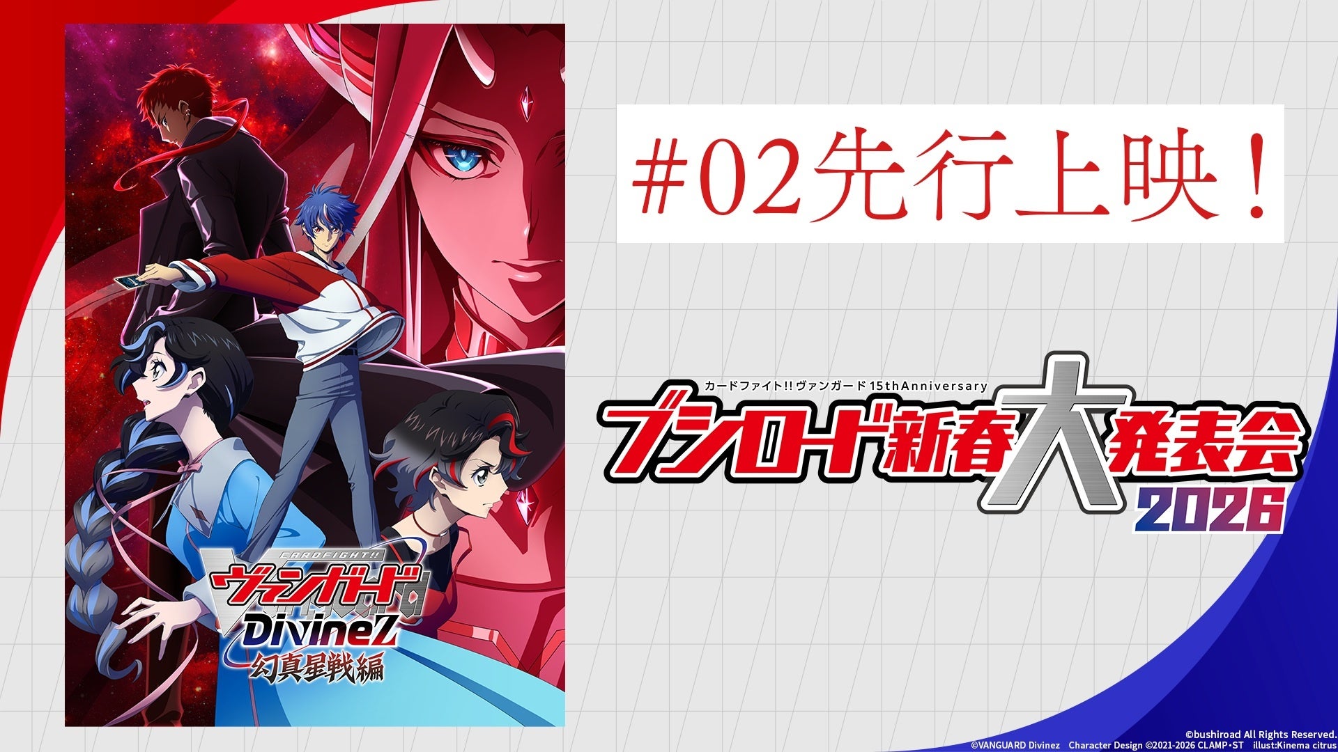 株式会社ブシロード(本社:東京都中野区 代表取締役社長:木谷高明)は、1月12日(月・祝)に『カードファイト!! ヴァンガード 15th Anniversary ブシロード新春大発表会2026』を開催し、今後の展開を発表しましたことをご報告いたします。