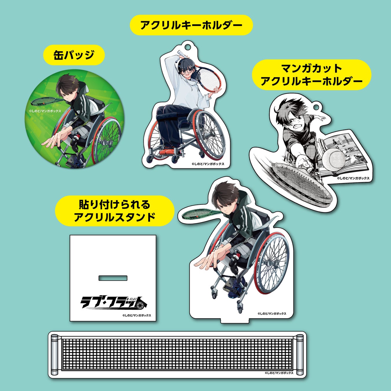 『ラブ・フラット』ではソフトテニスの中学チャンピオンとなった朝霧凪が事故に遭い車いすテニスに転向。世界一の選手を目指し新たな戦いに挑む姿を描く。また同会場に作家ブースも設置し『ラブ・フラット』のアクリルキーホルダー、缶バッジ、マンガカットアクリルキーホルダー、貼り付けられるアクリルスタンドといったオリジナルグッズを販売予定。