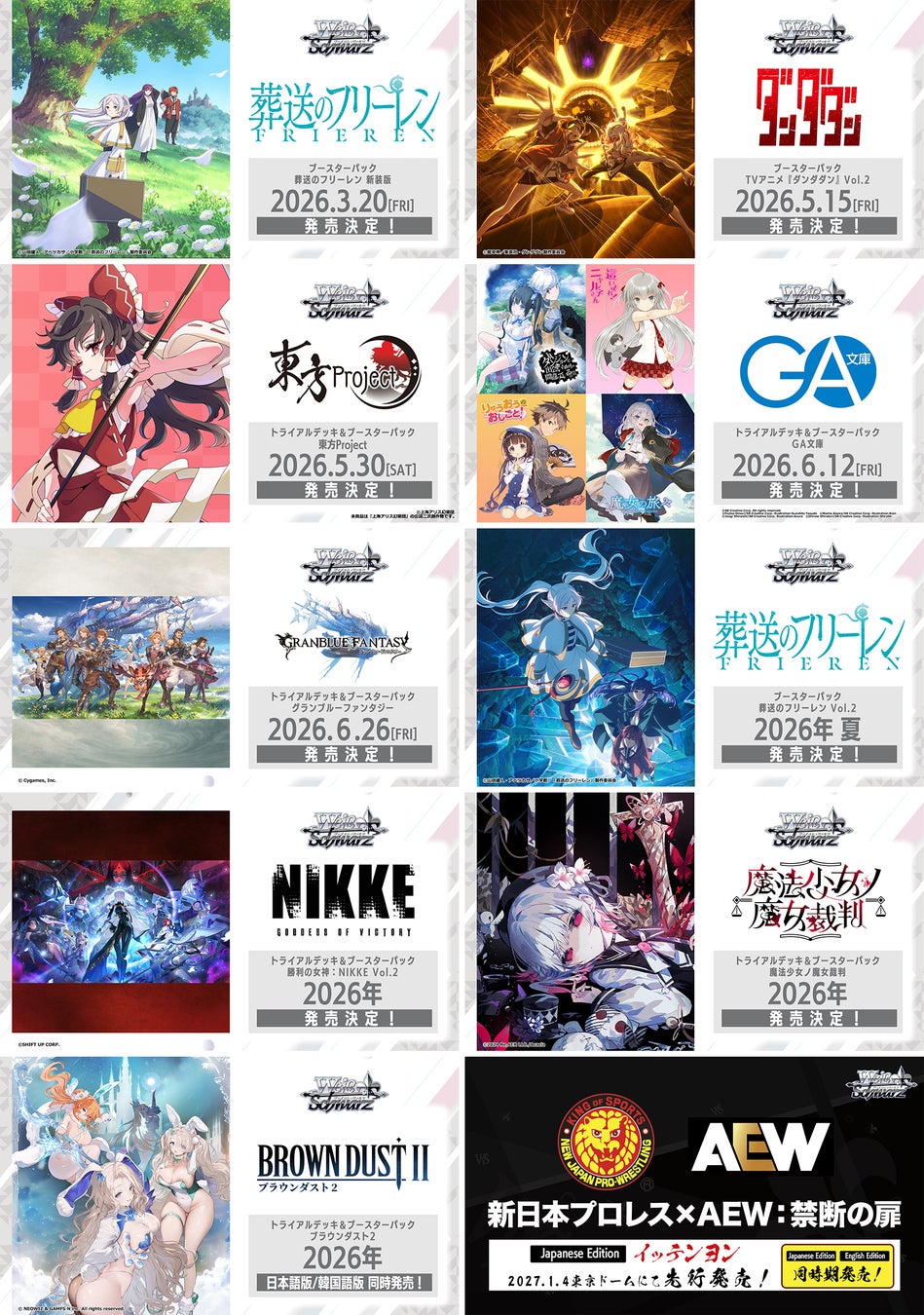 株式会社ブシロード(本社:東京都中野区 代表取締役社長:木谷高明)は、1月12日(月・祝)に『カードファイト!! ヴァンガード 15th Anniversary ブシロード新春大発表会2026』を開催し、ヴァイスシュヴァルツの新規タイトルの発表や今後の展開を発表しましたことをご報告いたします。