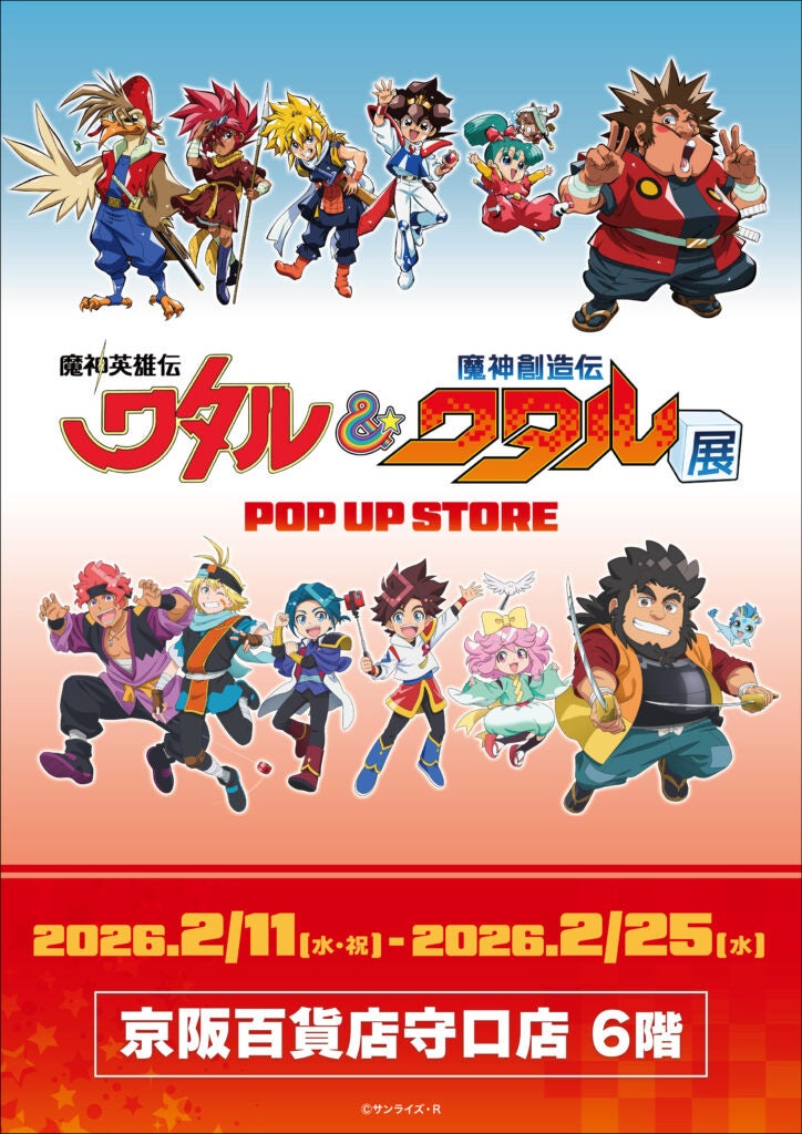 マンガ、アニメ、特撮などを始めとするサブカルチャーをテーマとした企画展を開催・運営している株式会社CRAZY BUMPは2026年2月11日(水・祝)~2026年2月25日(水)の期間で京阪百貨店守口店にて開催する【魔神英雄伝ワタル&魔神創造伝ワタル展POP UP STORE in 京阪百貨店守口店】の情報を公開致します。