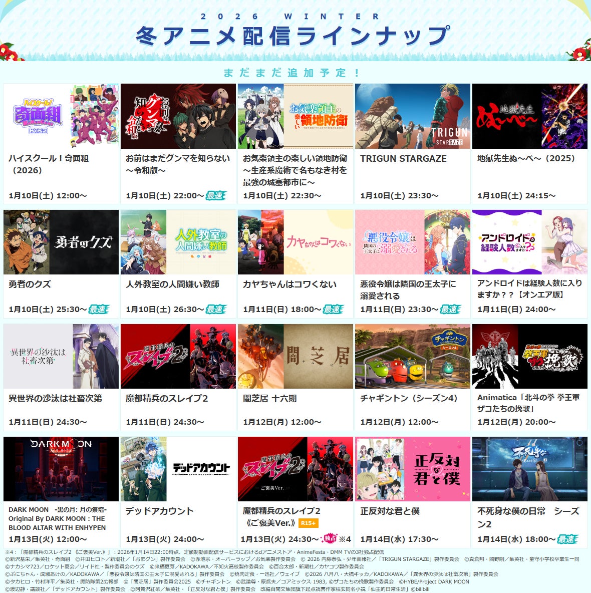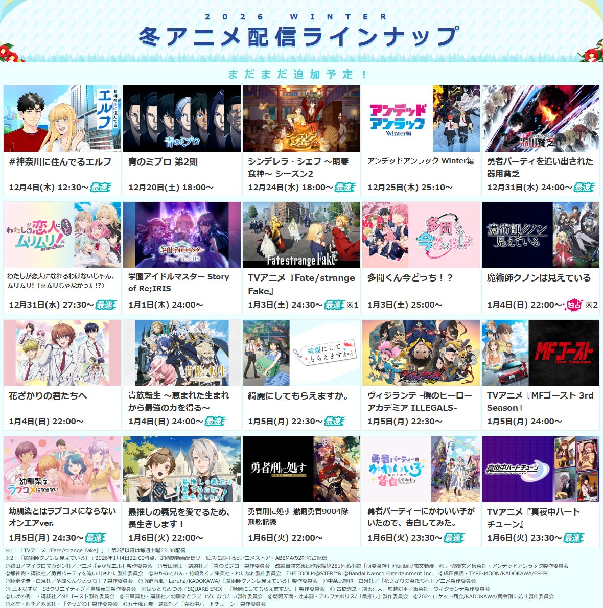 ※詳細は次項目「■2026冬アニメ・配信決定一覧」 及び ラインナップページをご確認ください