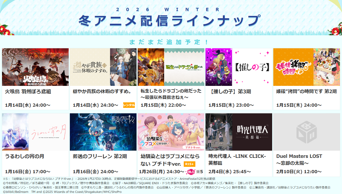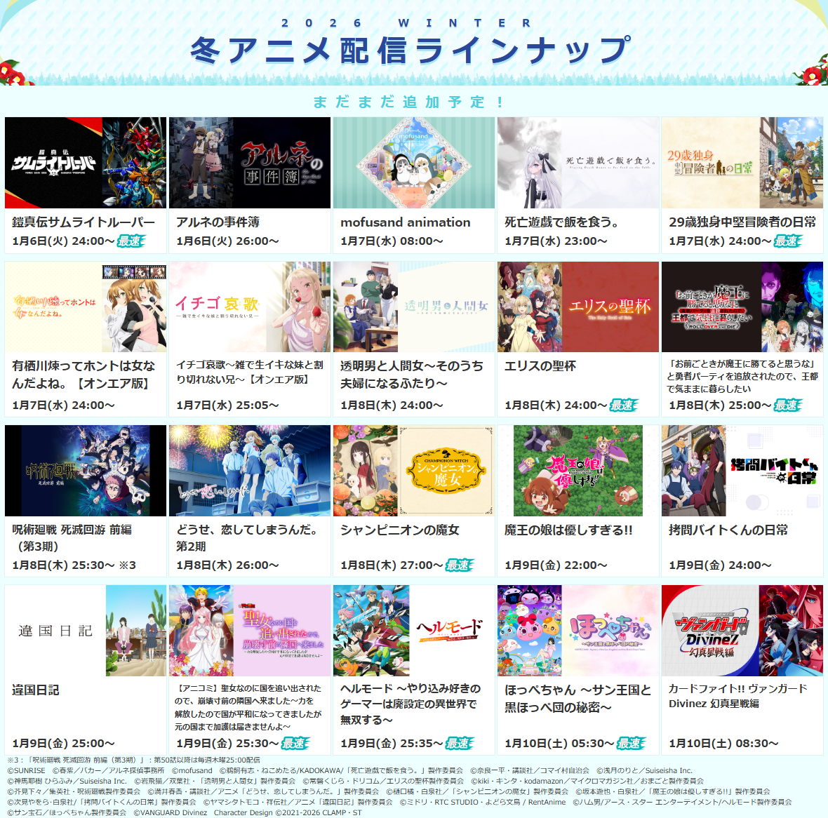 ※詳細は次項目「■2026冬アニメ・配信決定一覧」 及び ラインナップページをご確認ください