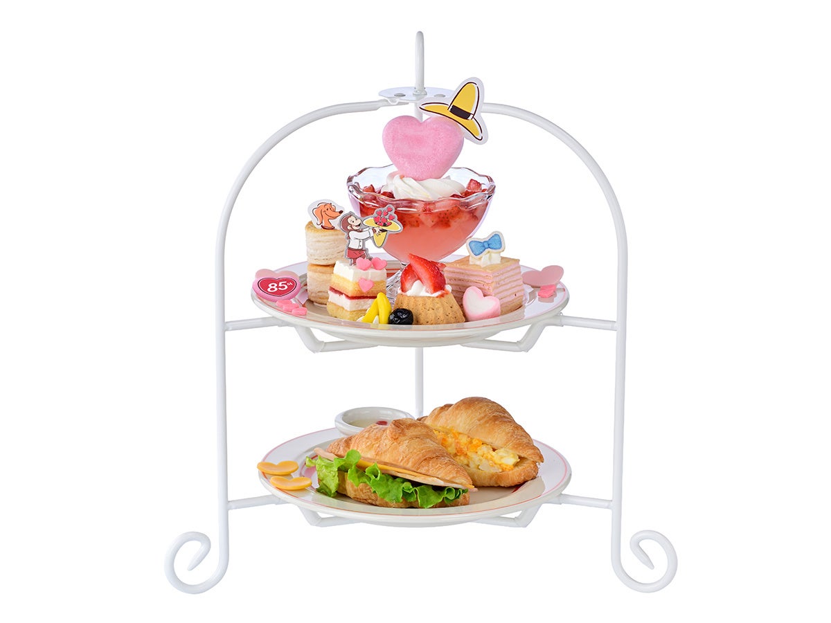 「おさるのジョージ」絵本刊行85周年を記念して、Curious George Kitchenよりお届けする、感謝とお祝いの気持ちをたくさんのハートで表現したアフタヌーンティーメニューです。