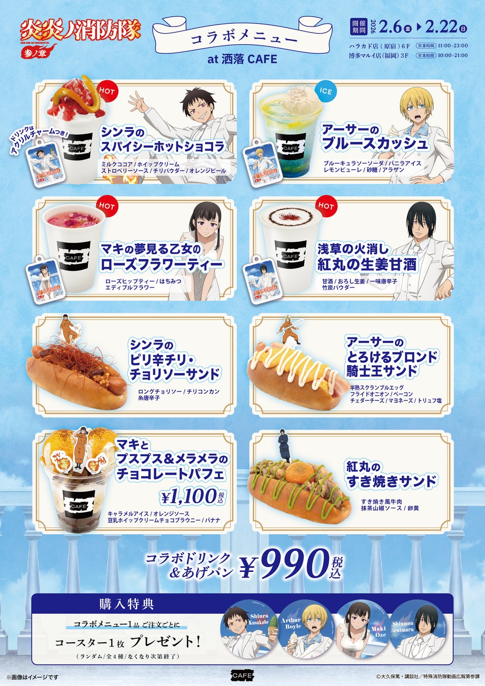 TVアニメ『炎炎ノ消防隊 参ノ章』コラボカフェを原宿と博多にて2月6日より同時開催決定! – Anique株式会社
