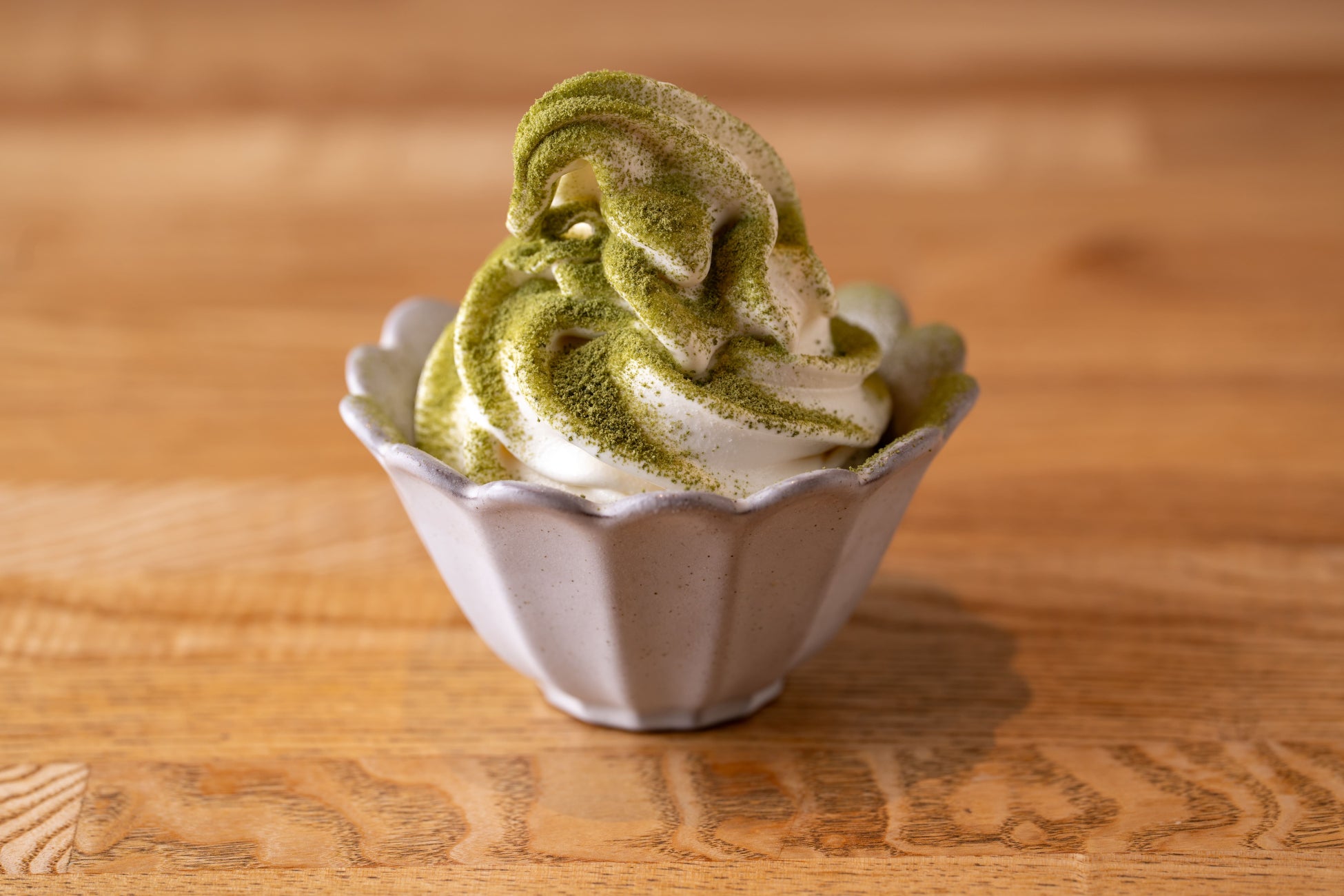 白いミルクソフトに、やわらかな抹茶の余韻を重ねた一品。作中で藤野が着ているパーカーをイメージしました。