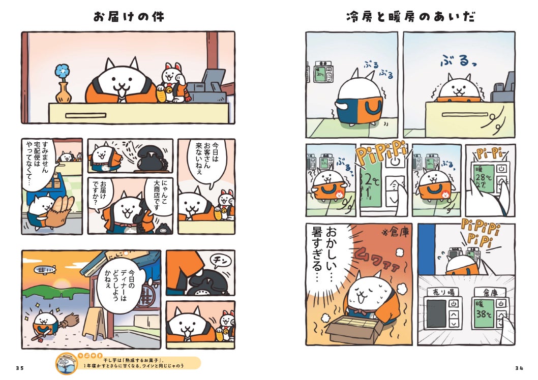 待望の書籍化となる本作では、これまで掲載されてきたWEBマンガに加えて、巻頭にはファン待望の完全新作描き下ろしマンガを収録! これまで一切姿を見せなかったにゃんこ大商店の謎多きオーナーがついに登場し、ネコ店長とネコ店員が“にゃんこ大商店”を始めることになった感動のきっかけを描きます。にゃんこ大商店誕生の秘話がついに明らかになる、必読エピソードです!