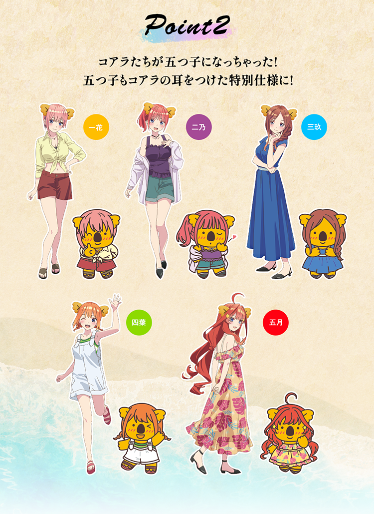 TVスペシャルアニメ『五等分の花嫁*』のキャラクターがコアラのマーチの耳をつけた特別仕様