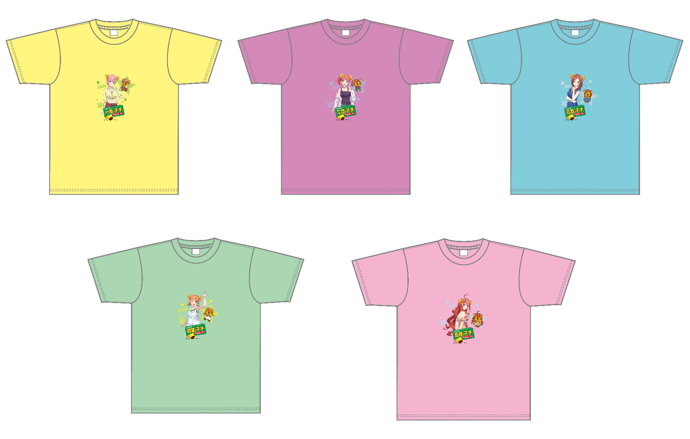 ・Tシャツ(ユニセックスL、XL)デザイン5種 ・アクリルスタンド デザイン5種 ・アクリルキーホルダーセット デザイン5種 ・缶バッジセット |