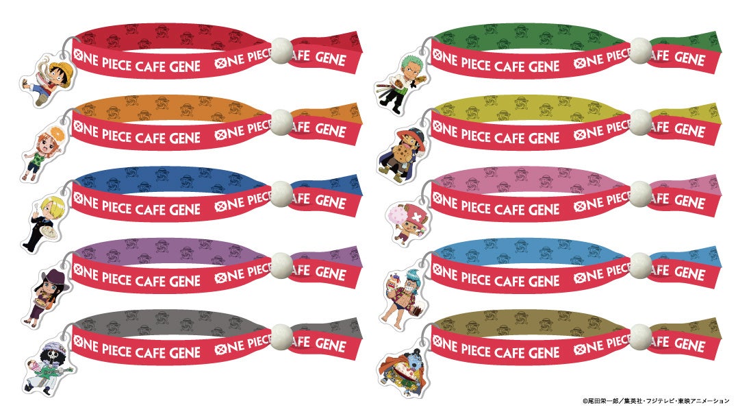 事前ご予約の上、カフェへご来場されたお客様に、 “ONE PIECE CAFE GENE バンド(チャーム付き)“をお渡しいたします。
