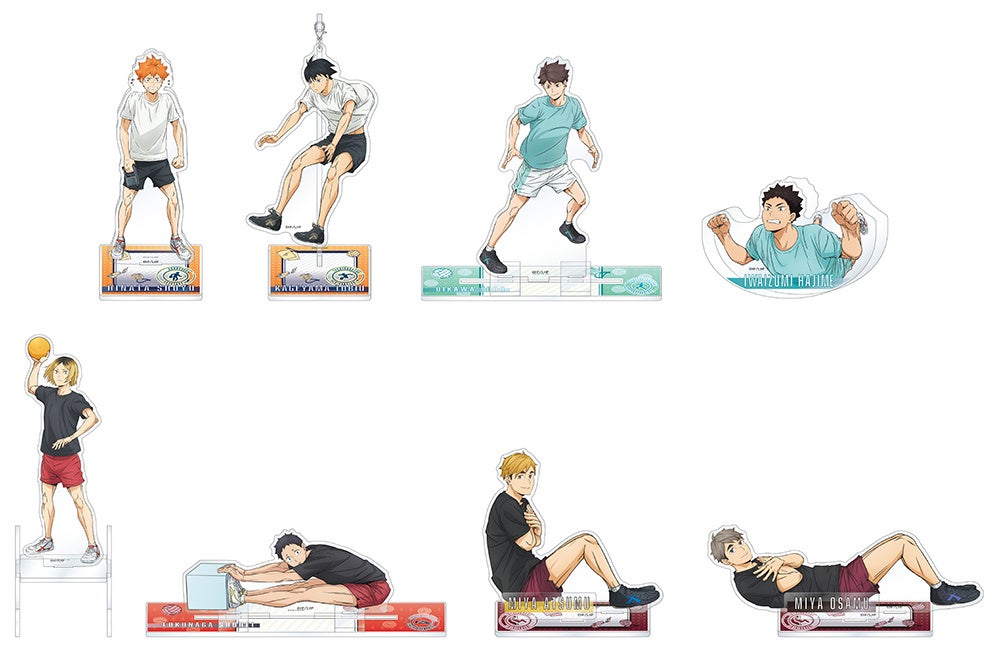 日向、影山たち8人が体力測定を受ける様子の描き下ろしビジュアルを使用した「アクリルスタンド」や「キャラバッジコレクション」をラインナップ。そのほか、普段使いしやすい「マフラータオル」などの多数の商品を発売いたします。