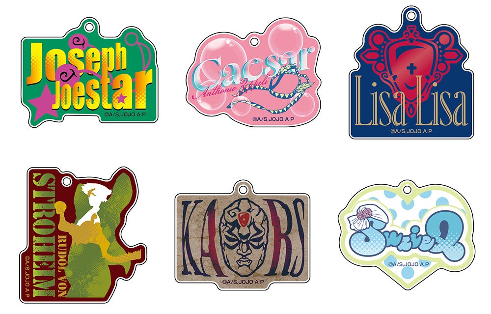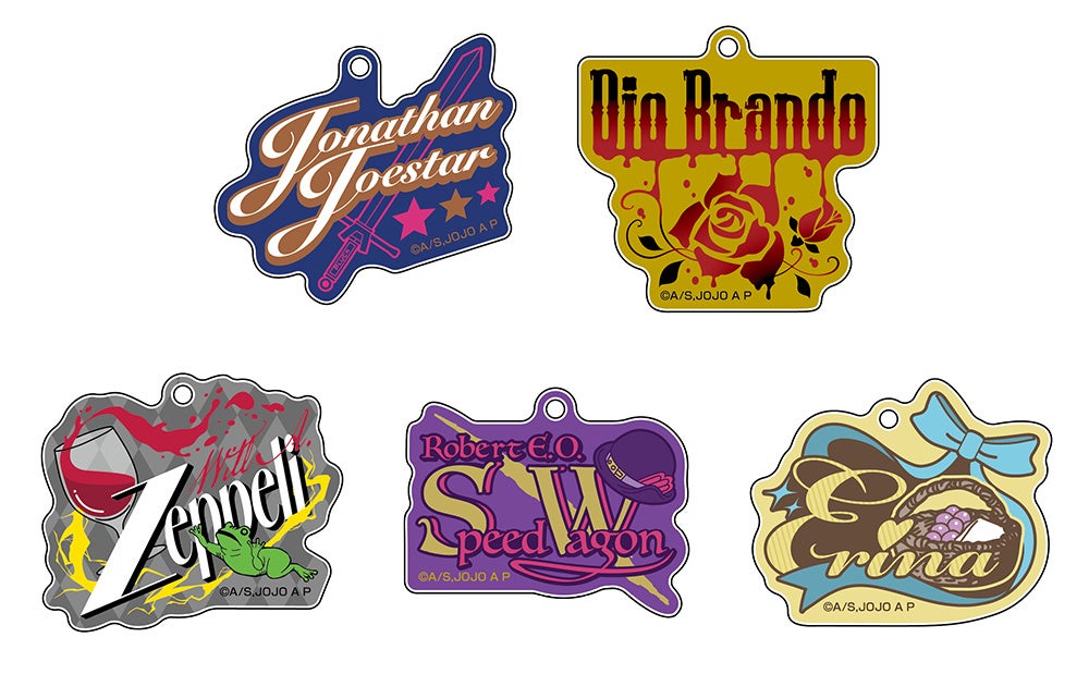新商品は、「ファントムブラッド」からジョナサンとディオ、「戦闘潮流」からジョセフとシーザーの描き下ろしイラストを使用した「オーロラアクリルスタンド」や「アクリルジオラマ」をラインナップいたします。このほか、普段使いしやすい「Tシャツ」、「グラスマーカーコレクション」などの多数の商品を発売いたします。
