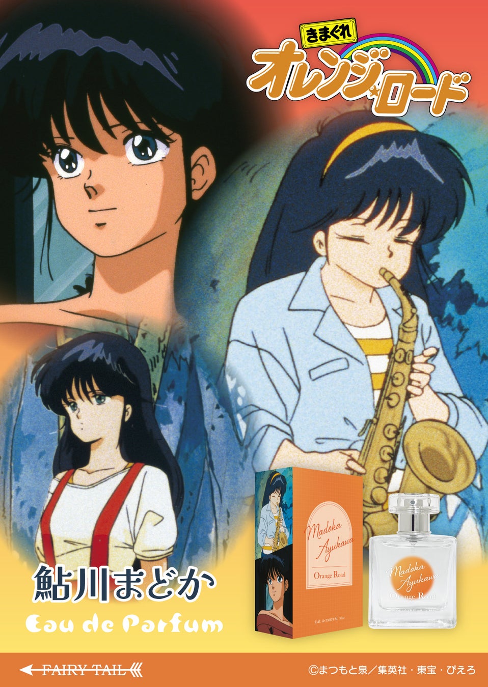 香水の輸入販売を手がけるフェアリーテイル株式会社(東京都港区)は、TVアニメ『きまぐれオレンジ☆ロード』より、ヒロインの鮎川まどかをイメージした香水、ディフューザー、その他グッズを発売します。