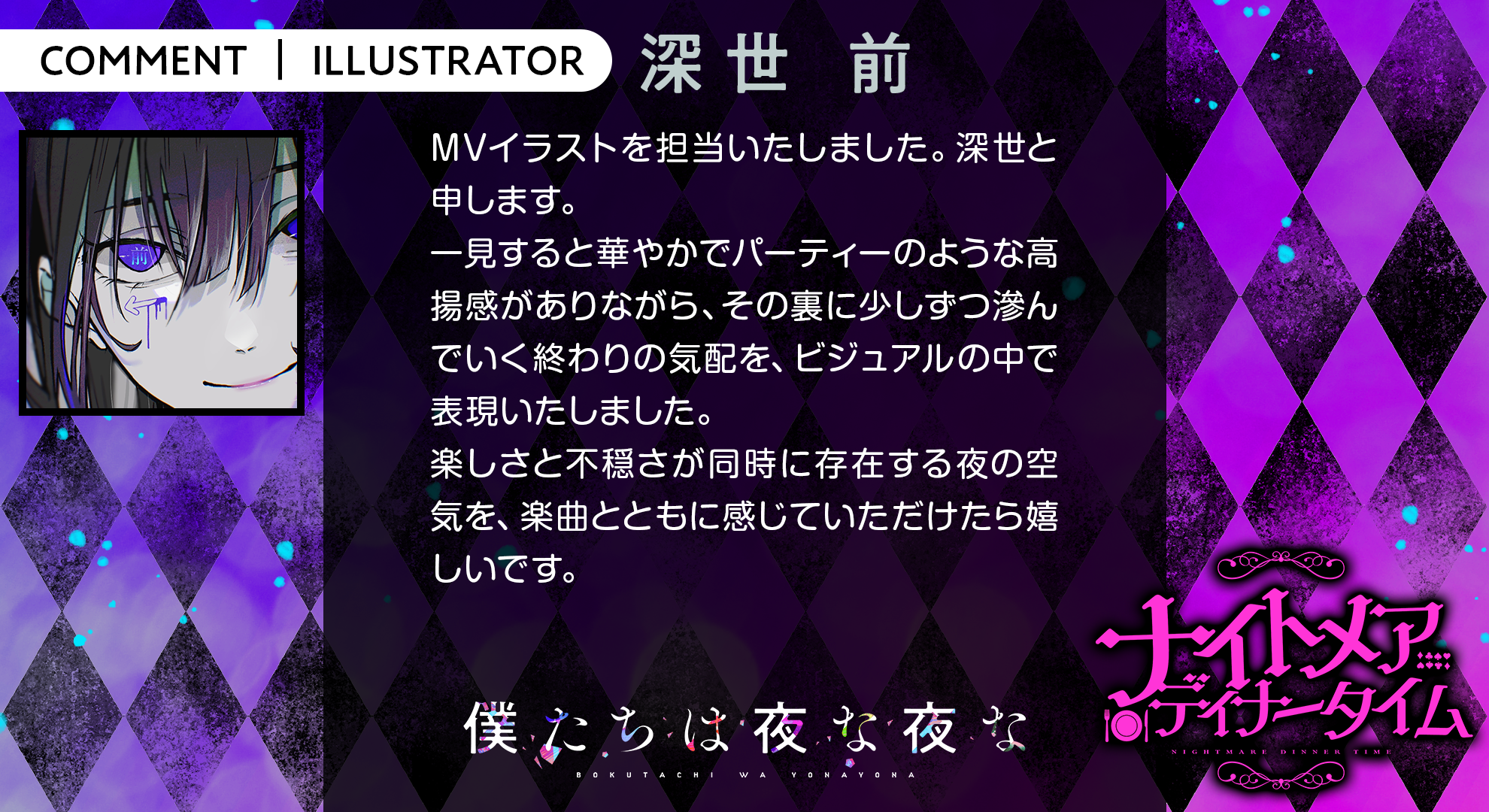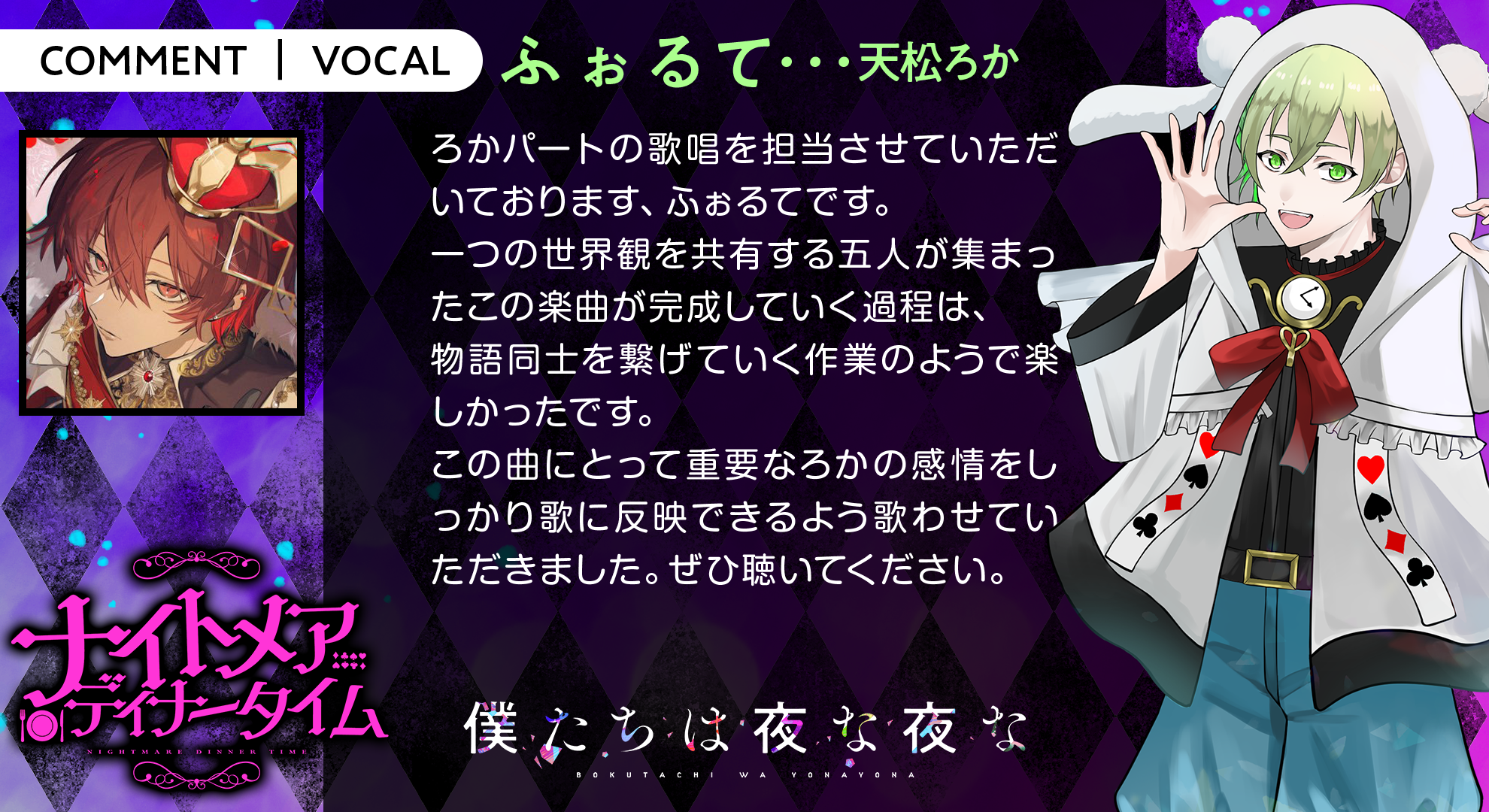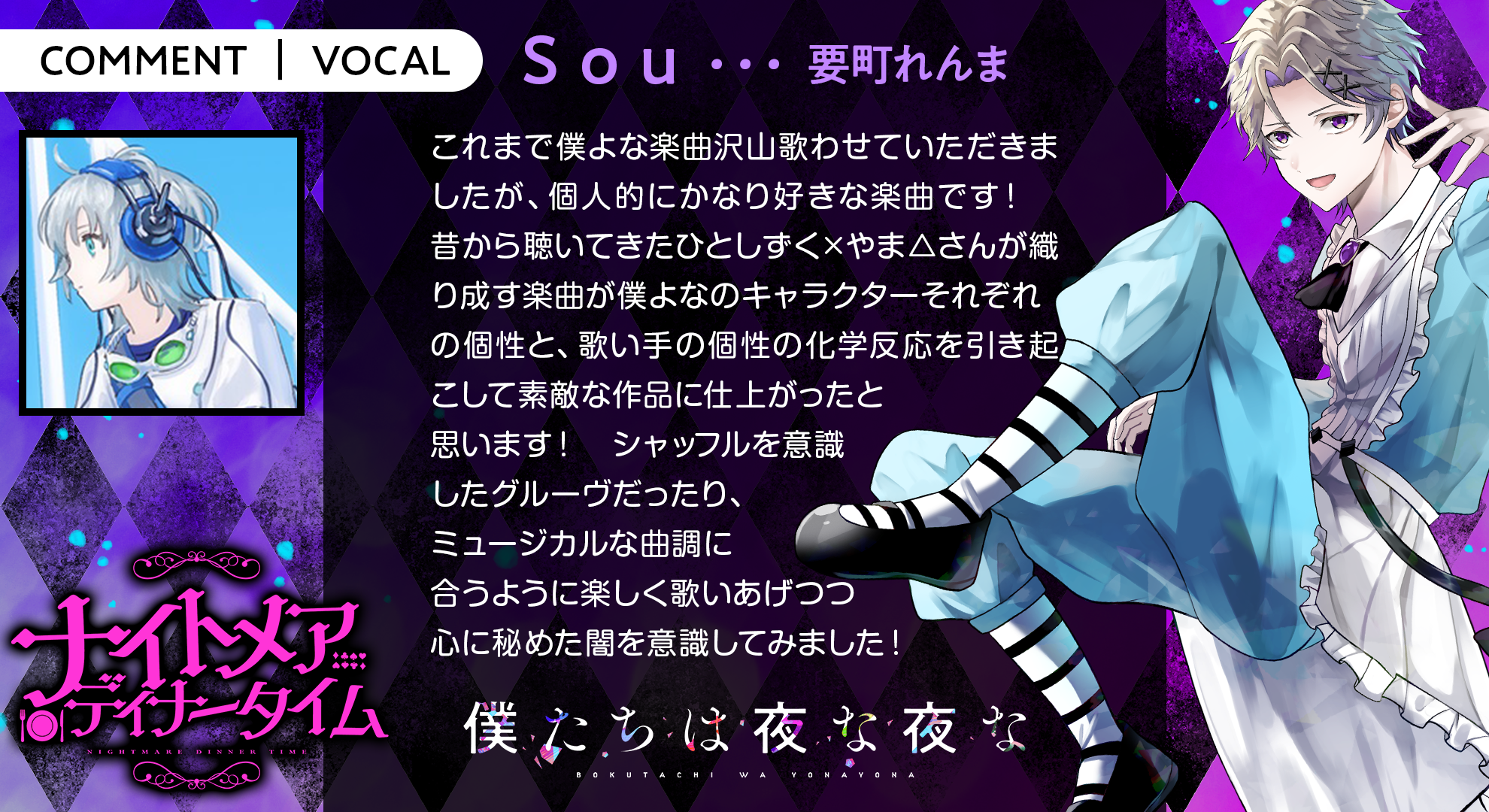 ボカロP×歌い手×声優「僕たちは夜な夜な」新曲『ナイトメアディナータイム』MV公開! ひとしずく×やま△・梓川・いゔどっと・しゅーず・Sou・ふぉるてからのコメント到着!