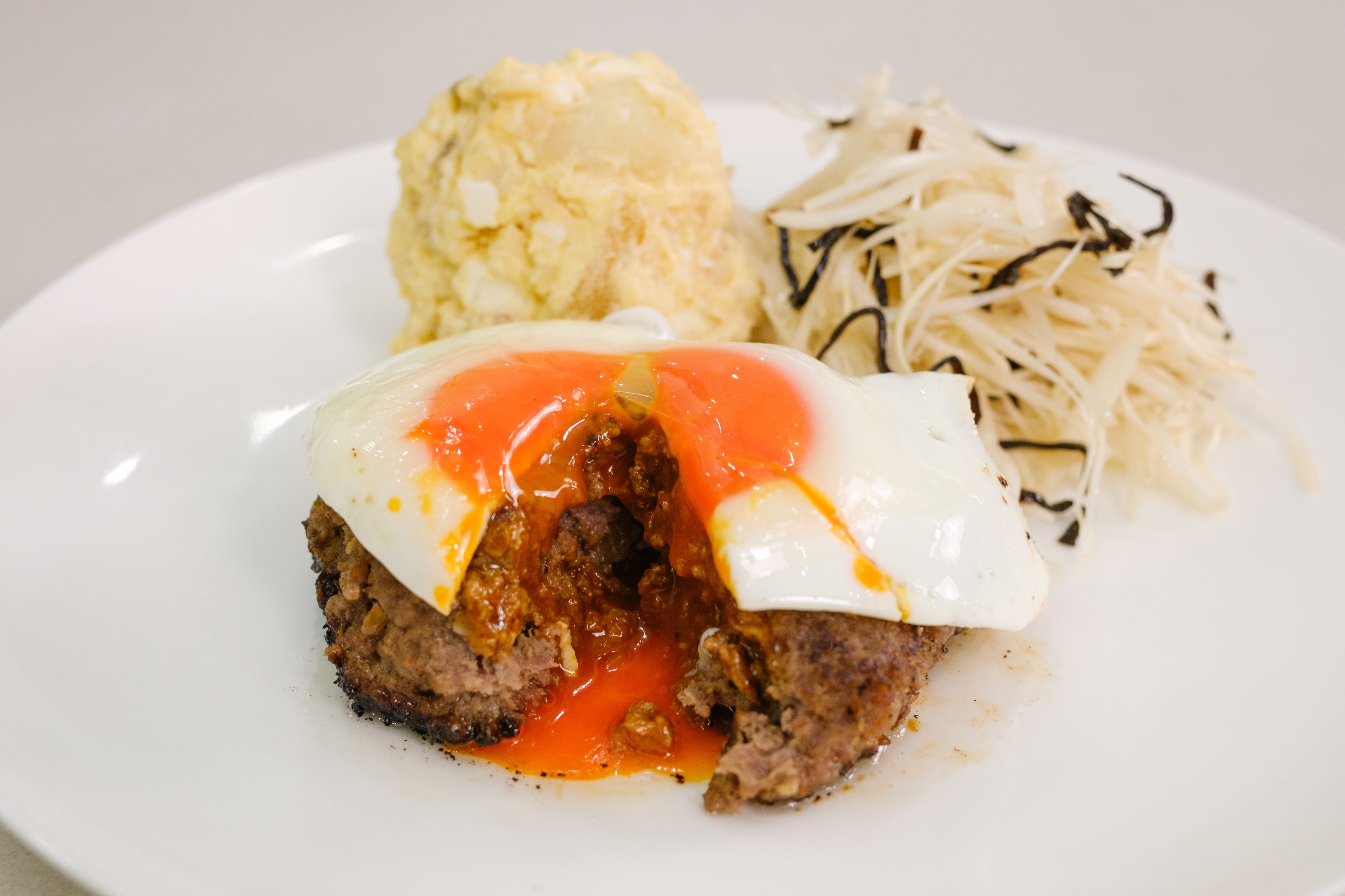 「店でもハンバーグをお出ししています。そのメニューをベースに、ご家庭でも作りやすいレシピにしてみました。牛肉100%の『肉の食感を楽しむ』ハンバーグです。普段は使わない調味料を使いましたが、その理由は動画でご説明します」