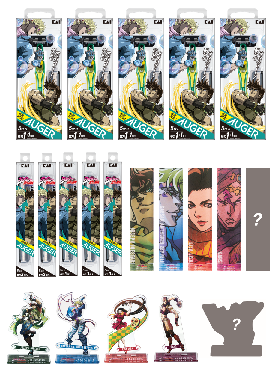 グローバル刃物メーカーの貝印株式会社(本社:東京都千代田区、代表取締役社長兼COO:遠藤 浩彰)のグルーミングツールブランド「AUGER(オーガー)」は、 アニメ「ジョジョの奇妙な冒険 ファントムブラッド / 戦闘潮流」とコラボレーションした同作キャラクターのオリジナルパッケージ&オリジナルカラーのカミソリ2種と替刃の先行予約を貝印公式オンラインストア限定で2026年1月19日(月)より開始いたします。また、2026年1月26日(月)の発売日※には、対象店舗限定のWノベルティプレゼントキャンペーンを実施します。