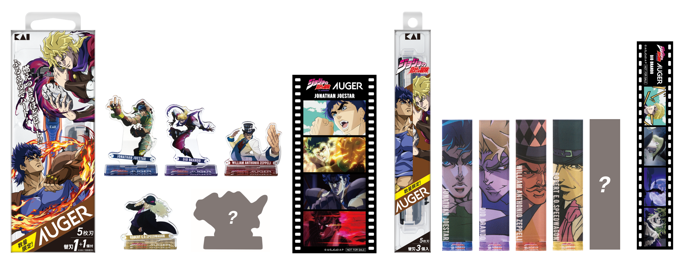 グルーミングツールブランド「AUGER」が、アニメ「ジョジョの奇妙な冒険 ファントムブラッド / 戦闘潮流」とコラボレーション。オリジナルアクリルスタンド付き限定アイテムの発売に併せて、一部の対象店舗でご購入いただくと、アクリルスタンドに加えアニメ「ジョジョの奇妙な冒険」名シーンのフィルムカードがもれなく付いてくる、Wノベルティプレゼントキャンペーンを実施いたします。