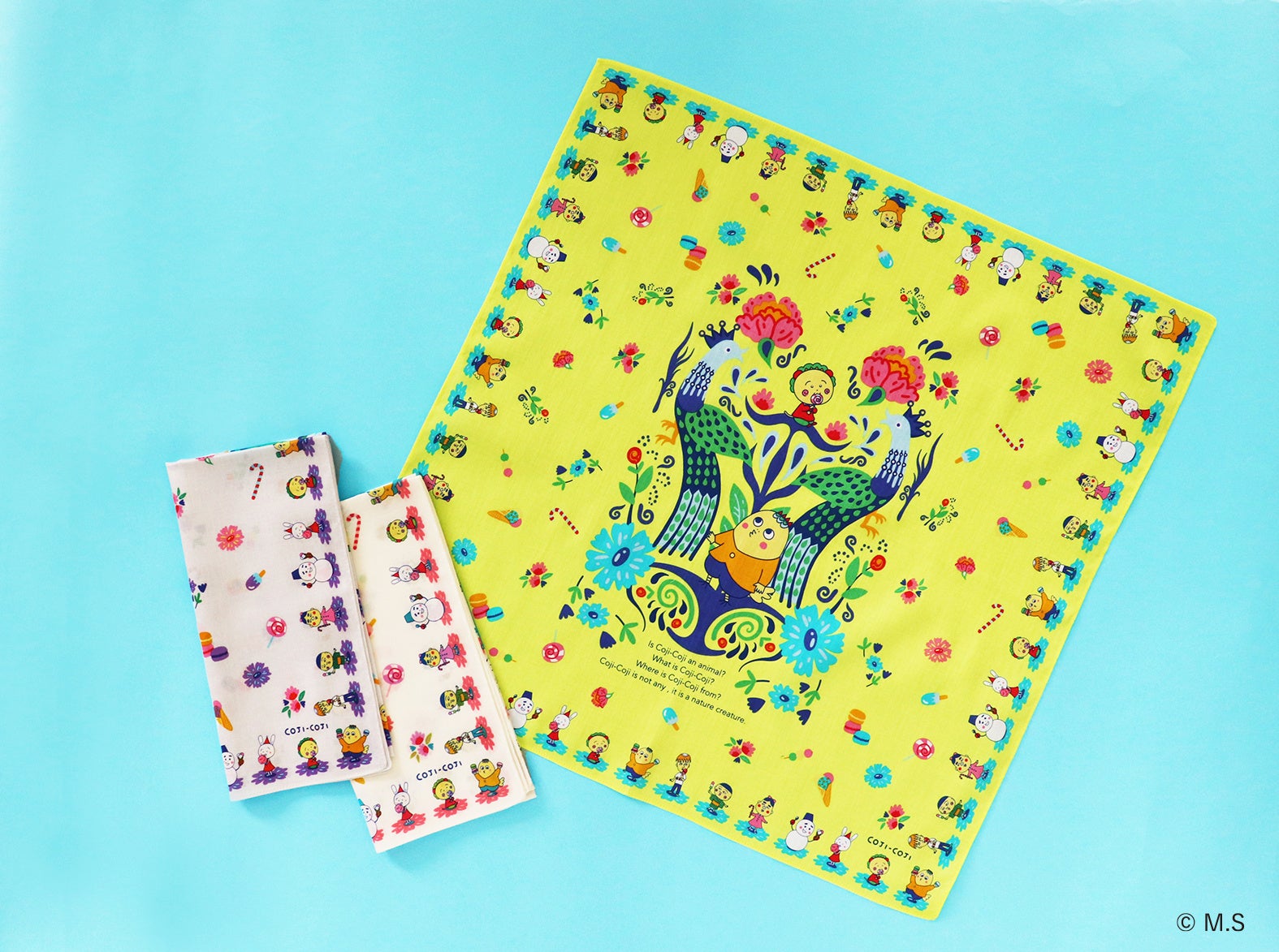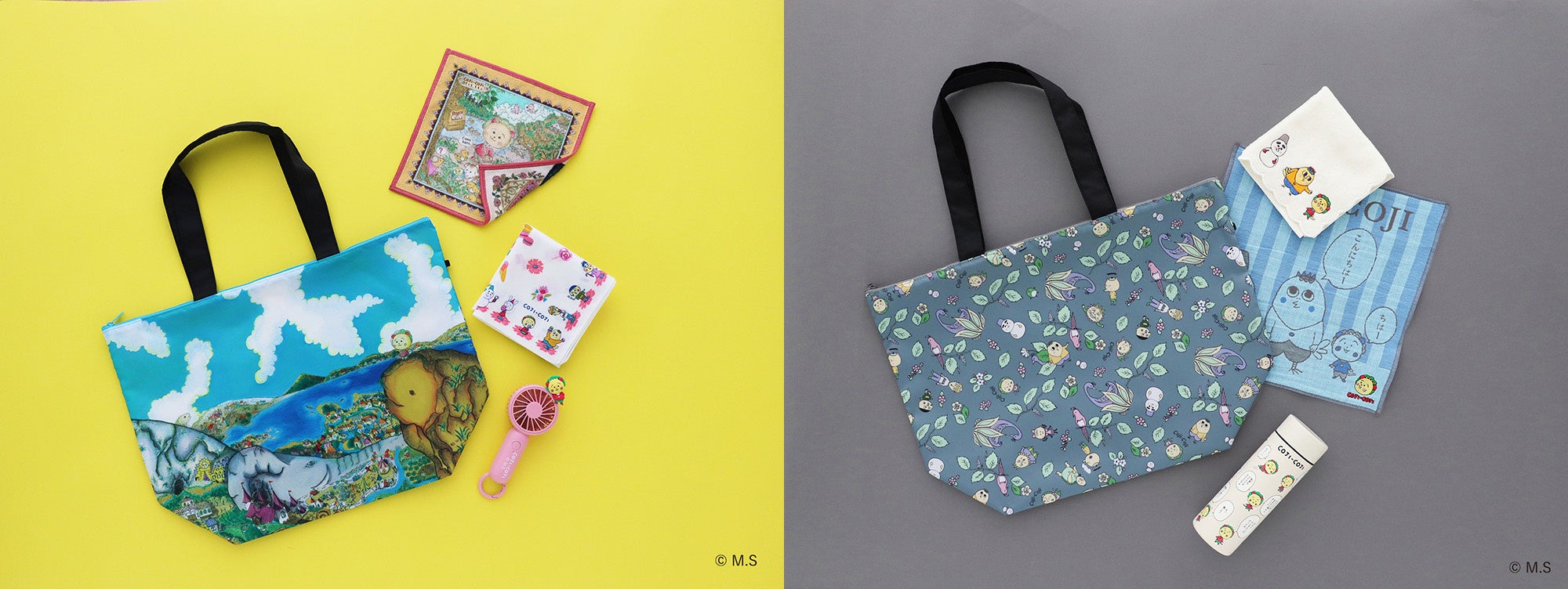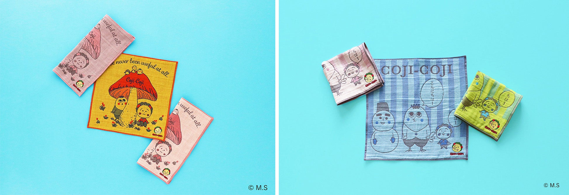 完璧にピュアな存在ゆえに無為自然に生きているコジコジの、邪気のない新鮮かつ真理だったりする発言や、メルヘンの国を舞台に住人達が繰り広げる日常の独特な世界観を、ハンカチやエコバッグなどの雑貨アイテムに落とし込みました。作品の魅力をぎゅっと凝縮した多彩なデザインをラインアップ。気分やシーンに合わせて、アイテム同士のコーディネートもお楽しみいただけます。