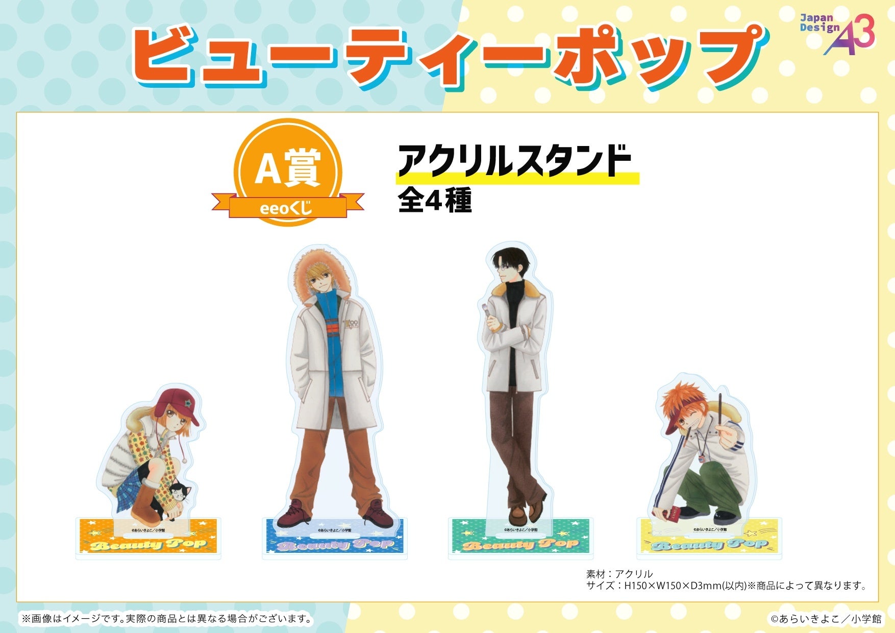 『ビューティーポップ』のオンラインくじ「eeoくじ」が、2026年1月20日(火)より通販サイト「eeo Store online」にて販売スタート! 主人公の小柴綺里をはじめ、鳴海彰伍、落合計彦、南啓らの公式イラストを使用したアイテムが、景品としてラインナップしました。
