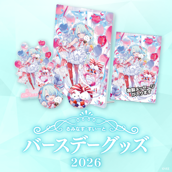 本日・1月21日に誕生日を迎えたるみなす・すいーとのバースデーグッズの詳細を公開するとともに、公式オンラインショップ「VEE Official Shop」にて受注販売を開始しました。