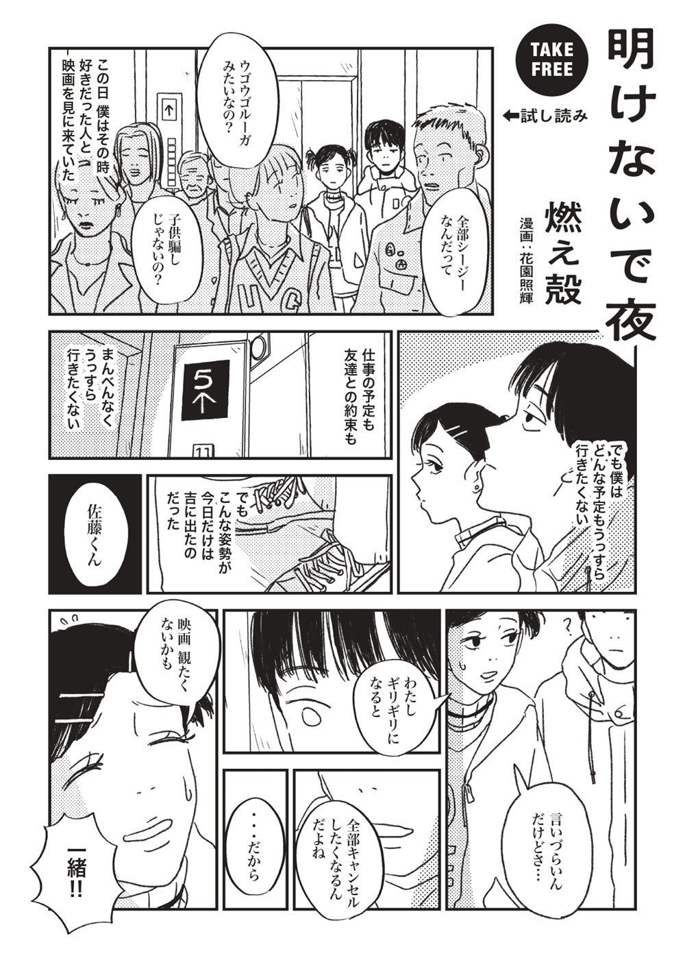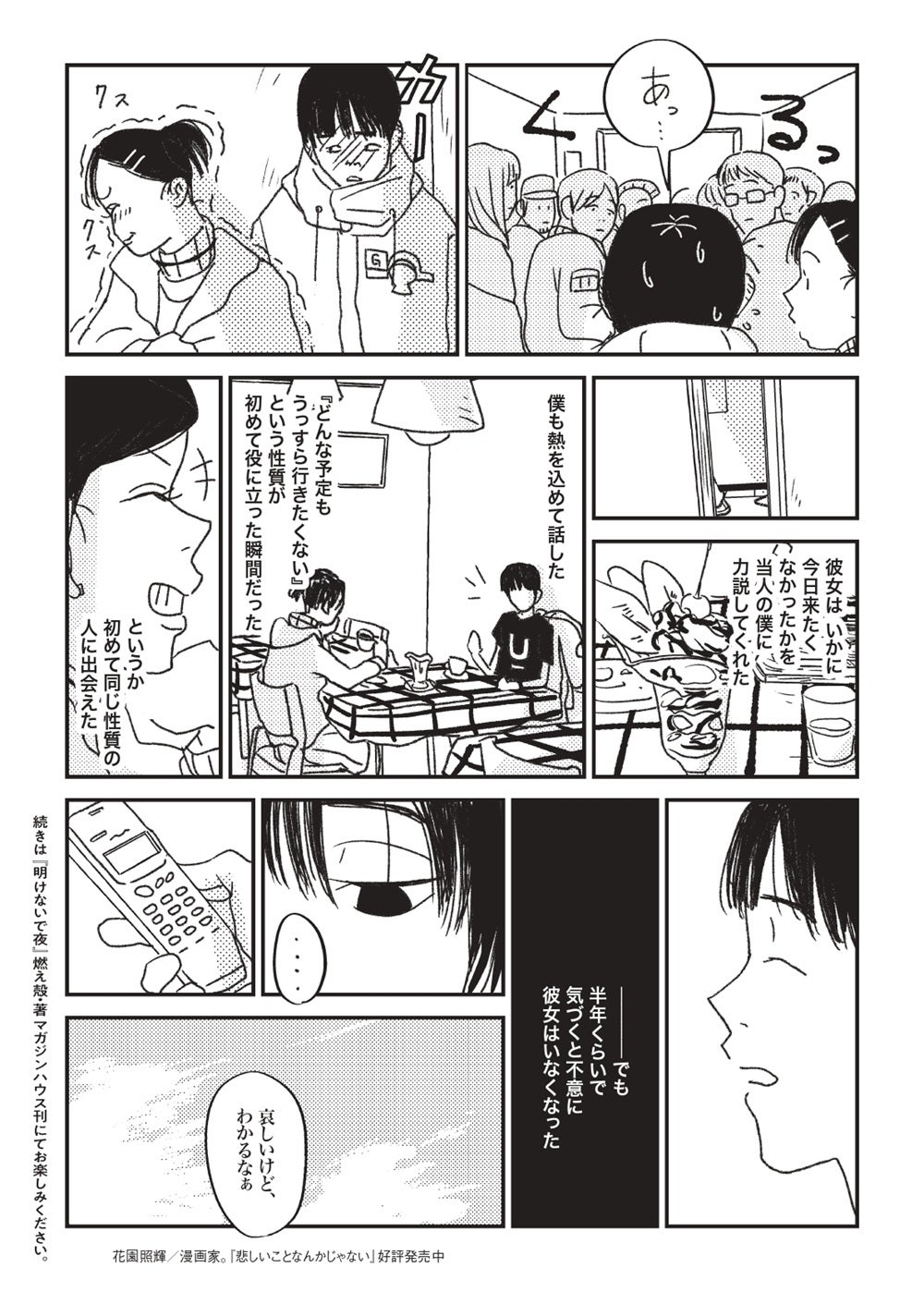 このたび、株式会社マガジンハウス(本社:東京都中央区、代表取締役社長:鉄尾周一)は、燃え殻『明けないで夜』の3刷重版出来を記念して、本書に収録されたエッセイのうち一篇をもとに描いた、特別描き下ろしの試し読み漫画を無料公開しました。